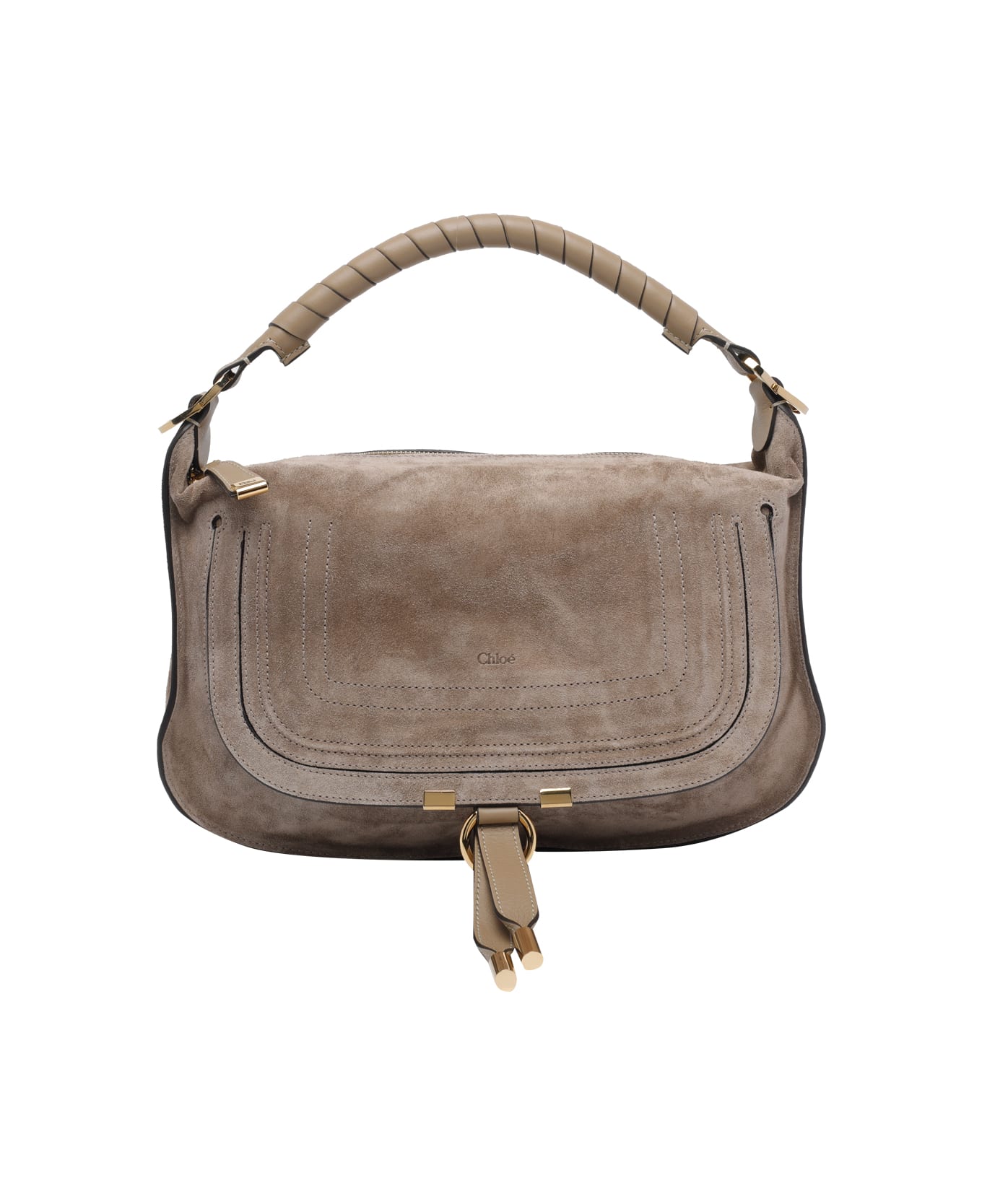 Chloe' beige Marcie shoulder bagc, inner open pocket, external pocket with flap, one handle, adjustable and removable shoulder strap, suede Composition: 100% Calf Leather
