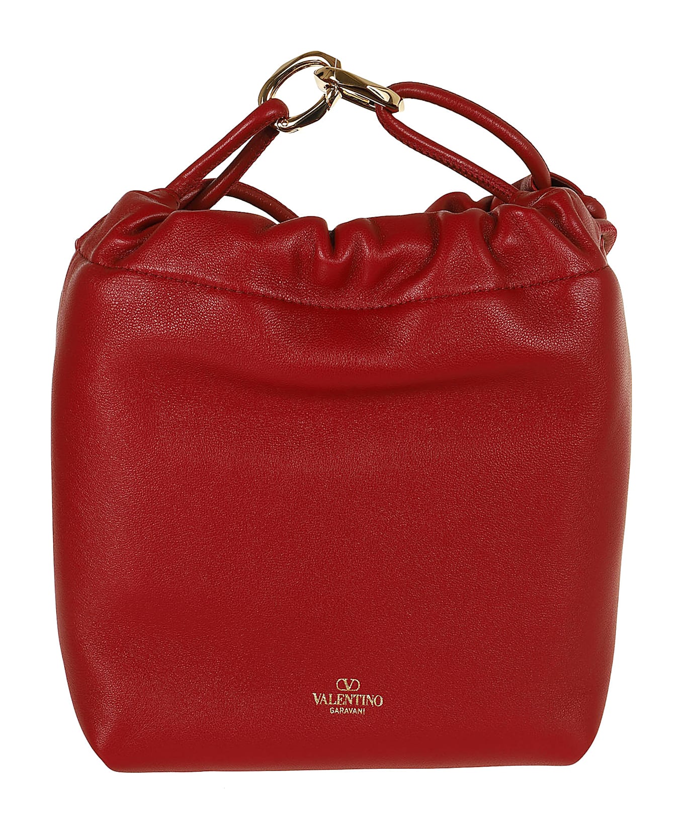 Mini Vlogo Pouf calfskin pouch bag BY VALENTINO GARAVANI. Drawstring closure; Nappa lining and internal card holder. Features metallic Vlogo Signature. Can be worn on the shoulder/cross-body or by hand thanks to the sliding and adjustable shoulder strap.