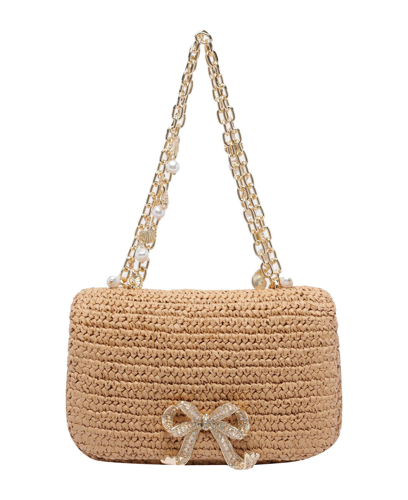 Raffia Bow Charm Shoulder Bag