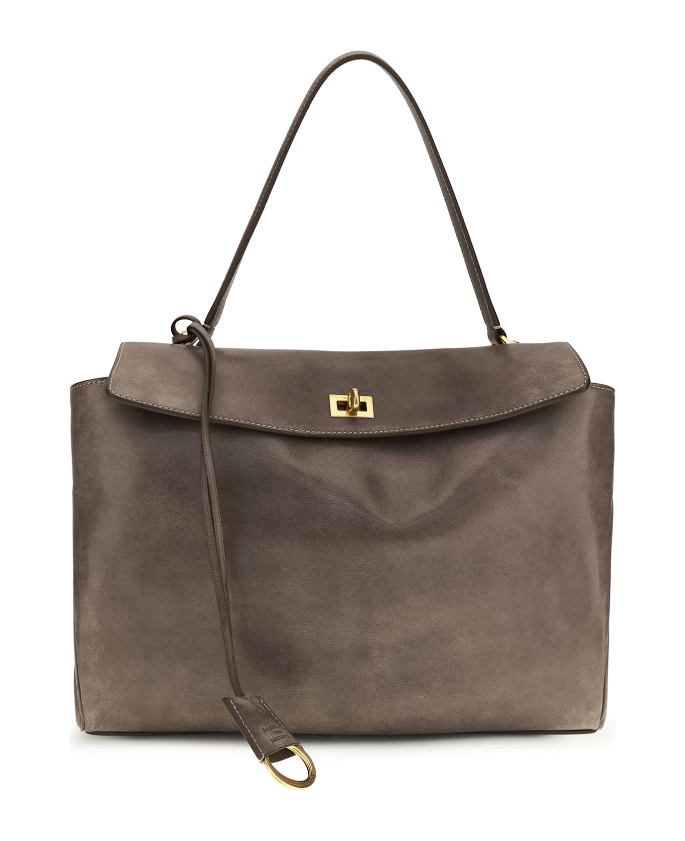 The rodeo shoulder bag by balenciaga, crafted from vegetable-tanned lambskin, combines artisanal craftsmanship with contemporary design. featuring a handle and a removable shoulder strap, it offers maximum versatility, while the removable keyring with a double spiral ring adds a distinctive detail. the antique silver hardware, twist lock closure, and snap buttons on the sides enhance the bag s character. featuring a large front pocket, main compartment, interior zippered pocket, two flat pockets on the back, and four brass feet, it is perfect for those seeking functionality and elegance in a single luxury bag.