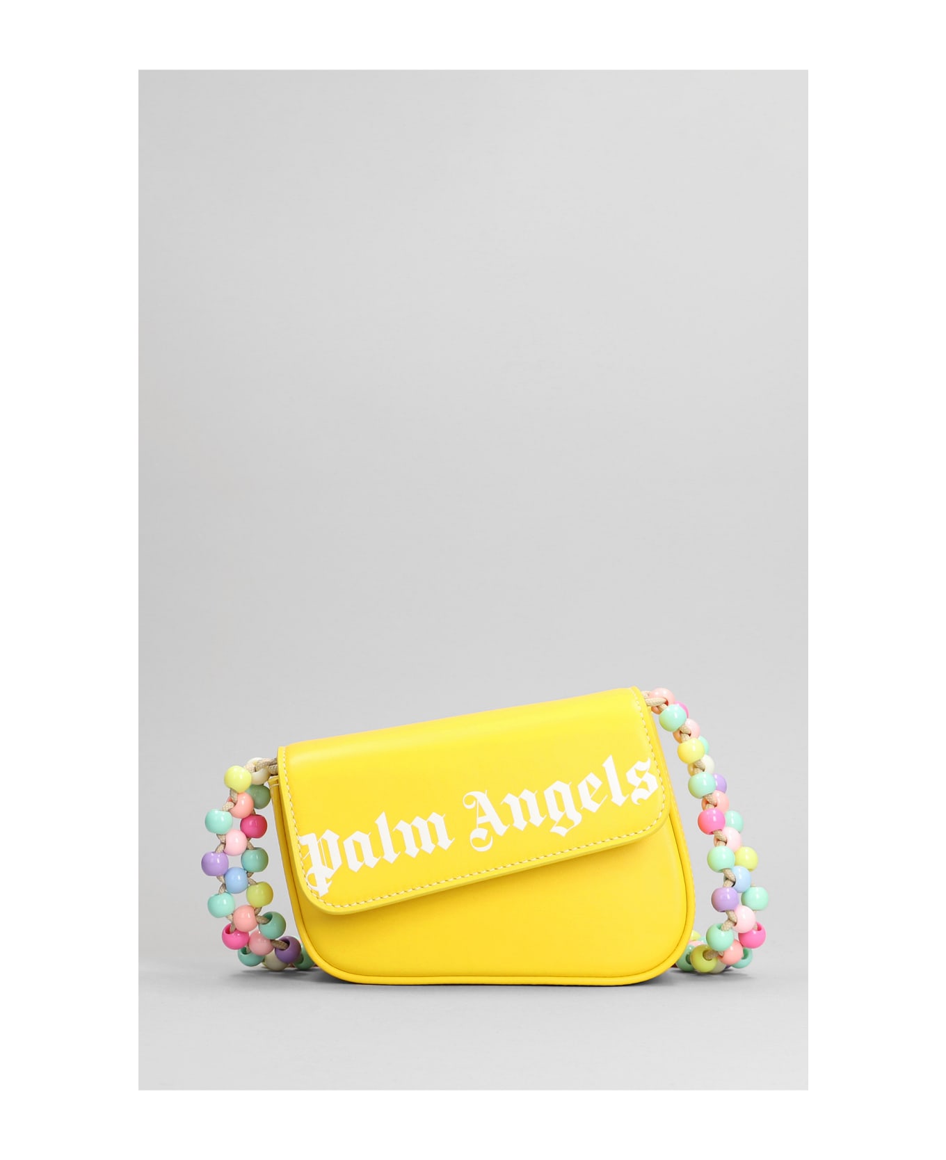 Shoulder bag in yellow leather, shoulder strap, magnetic closure, logo printed, bead embellished, 100% leather, Made in Italy, Height 120 mm, Width 160 mm