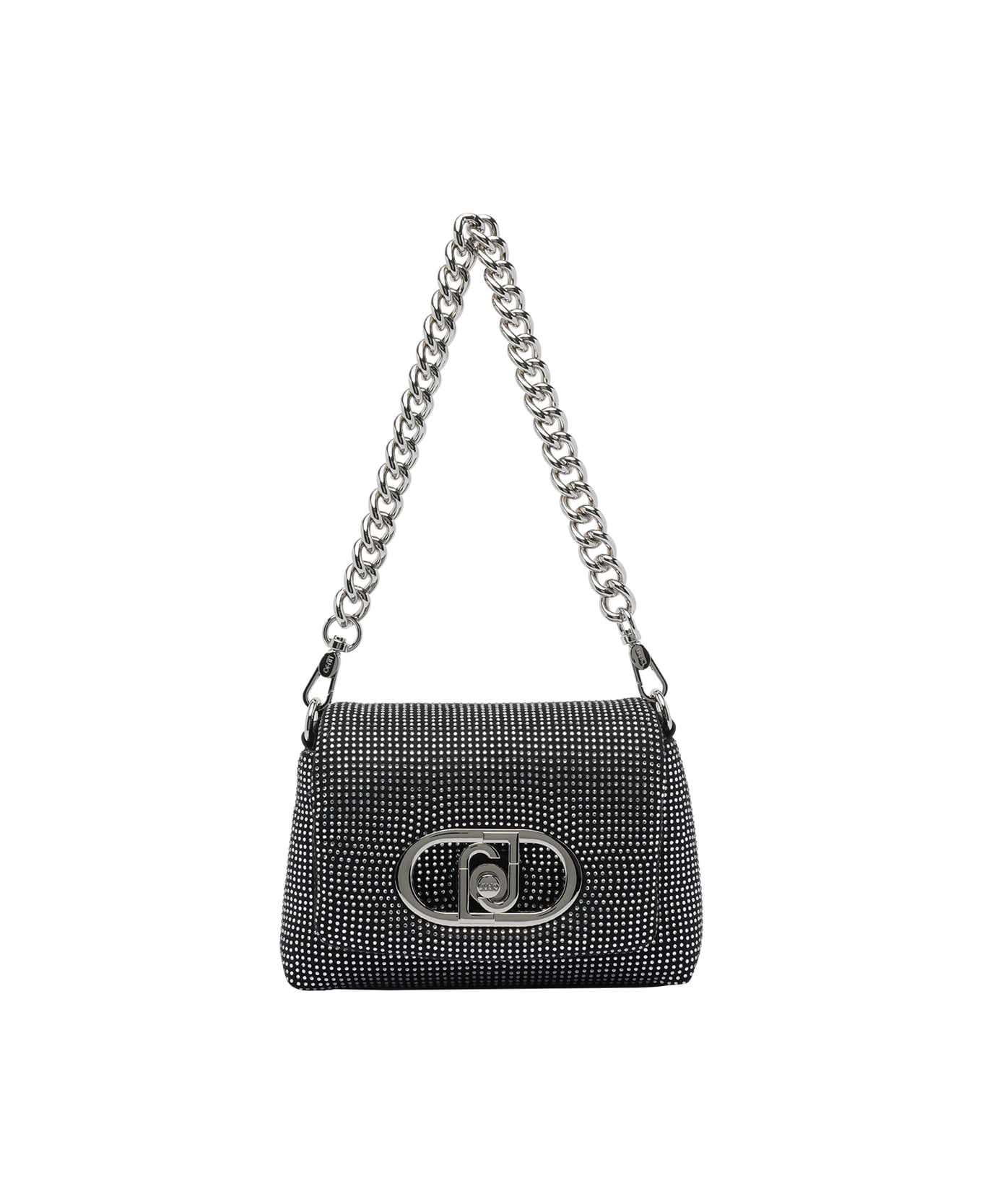 Liu Jo black Small logo shoulder bag, magnetic closure, inner zipped and open pocket, removbale chain strap, frontal logo, strass allover Composition: 100% Polyester