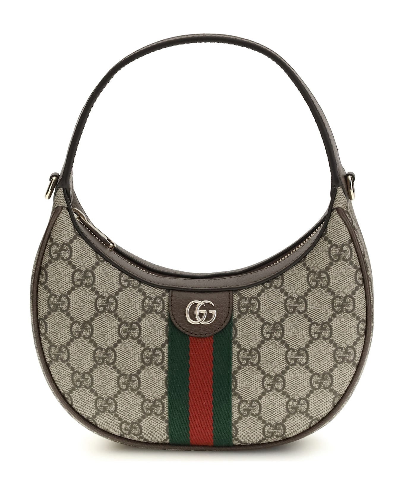 The small ophidia shoulder bag by gucci combines classic elegance with iconic details. crafted in brown leather with light gold hardware, it features green cotton and linen lining, the house's famous double g logo and distinctive web ribbon. a chain shoulder strap and zipper closure complete the design for a refined and versatile style. Composition: 100% % Fabric