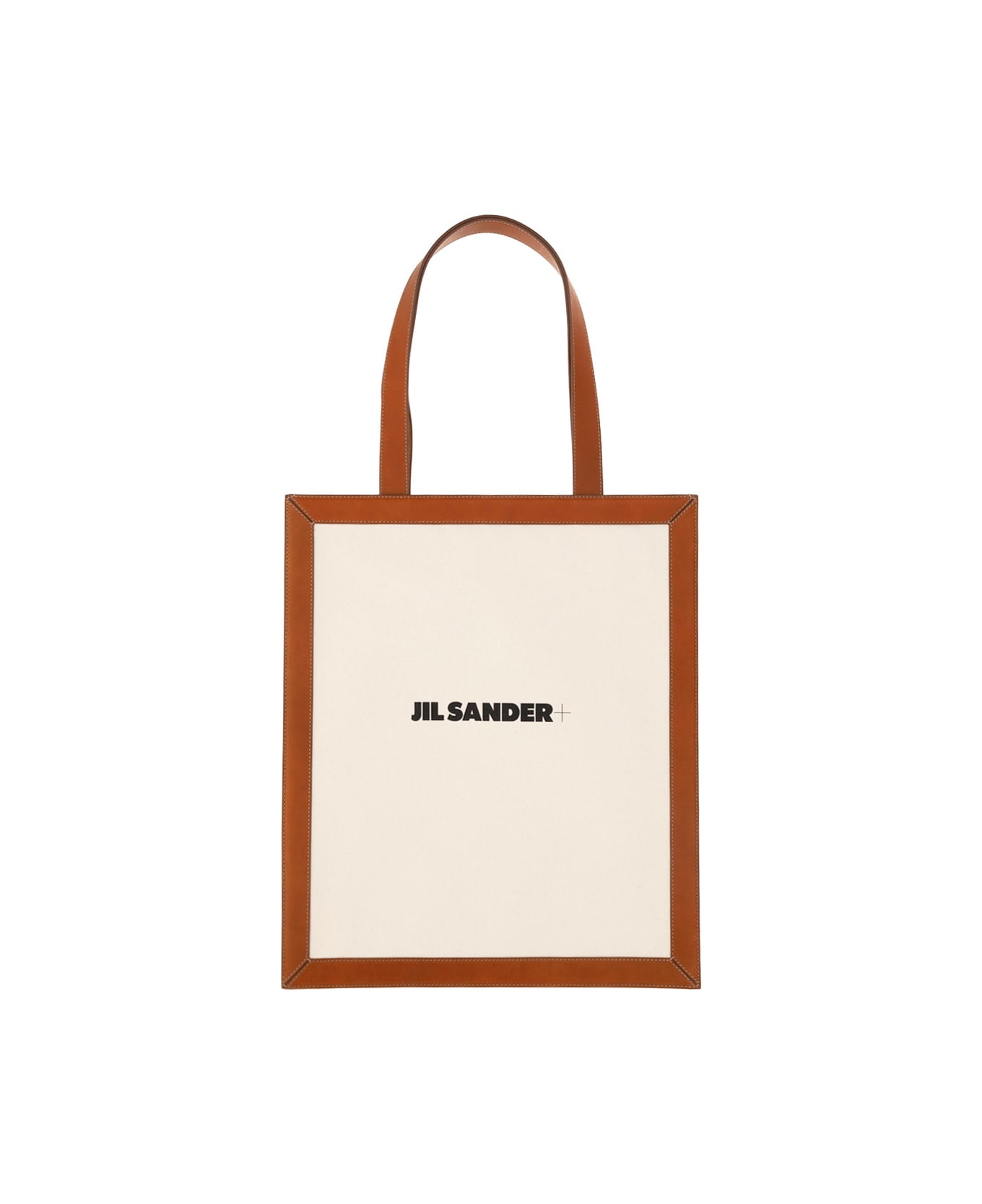 Medium brown Tote Bag from Jil Sander Cotton and Calfskin Tote Bag by Jil Sander, top snap button closure, leather trim and handles, contrasting brand logo on the front, removable interior leather pocket with zipper.
