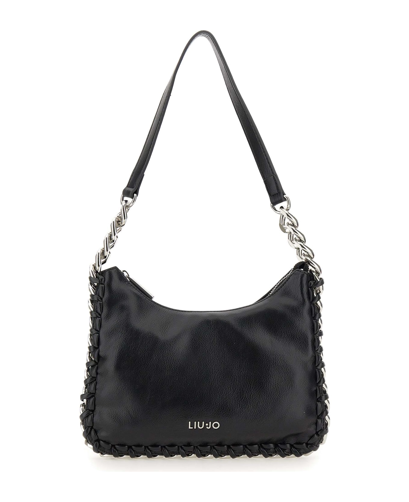 Shoulder bag Liu -Jo "Kalene", black, eco-sustainable in Pu, intertwining motif with chain, top handle, front metal logo, inside pocket, zip fastening, silver hardware. Dimensions: length 26cm, depth 4cm, height 21cm.