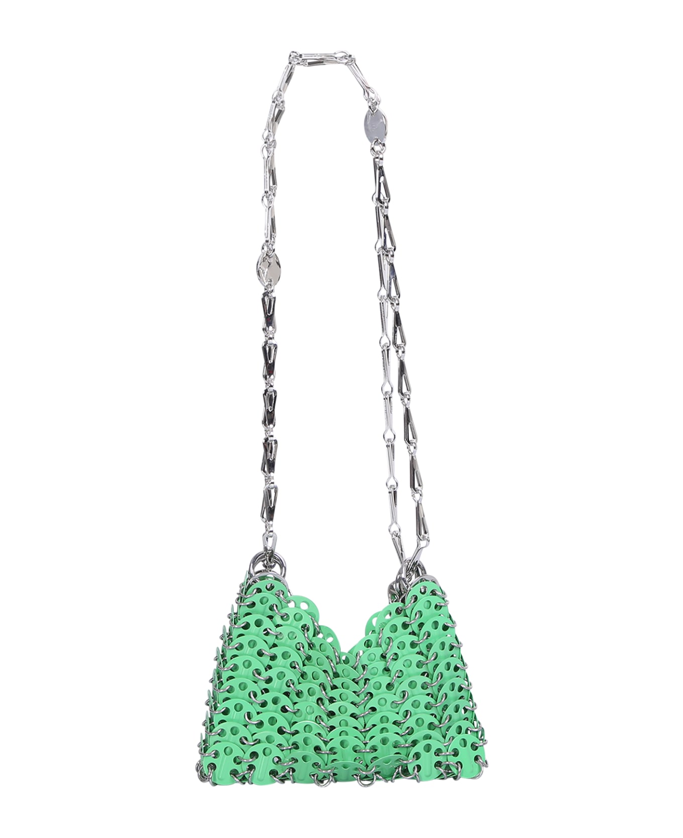 Metal mesh design. Main compartment. Shoulder strap. Color: green