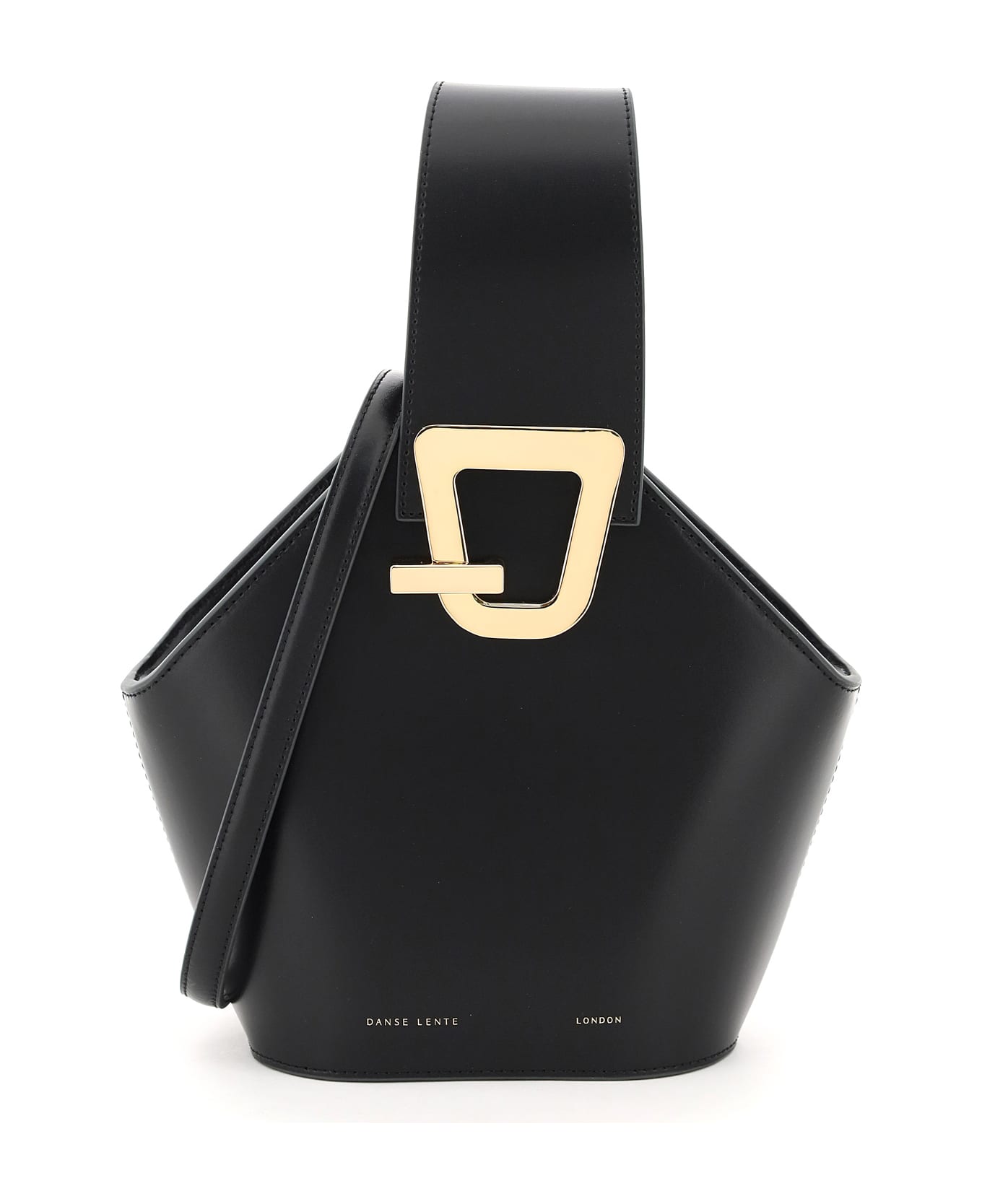 Johnny mini leather bag by Danse Lente, featuring a removable handle on the back with maxi branded metal detail on the front. Adjustable shoulder strap, gold-tone logo print, magnetic button bridge closure, canvas-lined interior with a zip pocket. Gold-tone metalware.