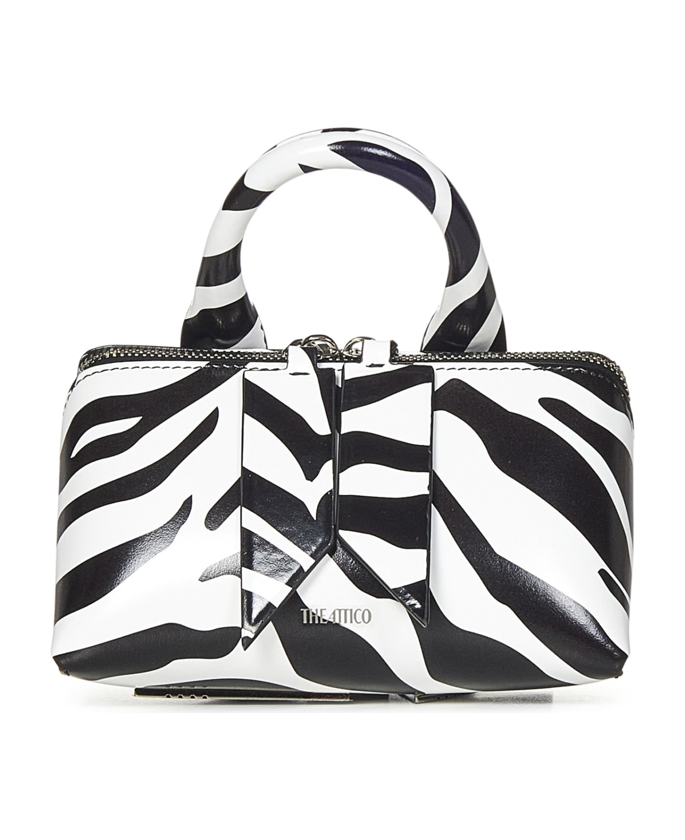 Composition: Double-slider Zip Closure On Three Sides, Oversized Zebra-print Calfskin Zip Puller Zebra-print Calfskin Top Handle; Adjustable And Detachable Zebra-print Calfskin Shoulder Strap, That Doubles As A Belt, With Silver Metal Logo Buckle The Attico Silver Logo At Front Interior: One Main Compartment, One Leather Credit Card Slot Silver Metal Logo Feet At Bottom Silver-toned Metal Hardware All-over Zebra Print Color: White/black 100% Calfskin (bos Taurus); Lining: 51% Polyurethane, 49% ( 70% Cotton, 30% Polyester), Internal Pocket: 100% Calfskin Made In Italy *icon