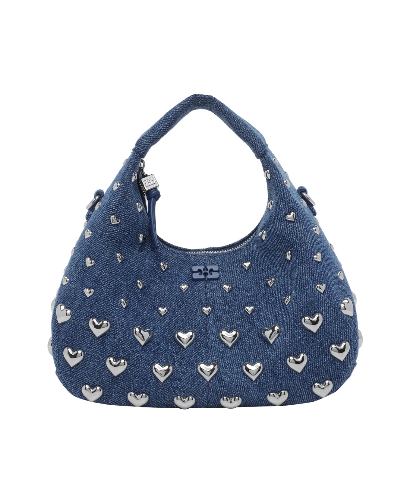 Ganni blue Hobo mini heart, zip closure, inner open pocket, one handle, adjustable and removable shoulder strap, logo