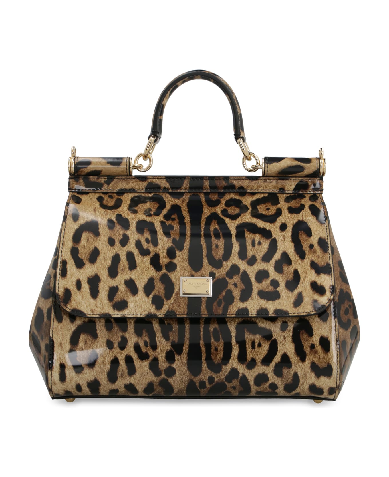 Smooth calfskin item leopard print magnetic fastening flap leather top handle internal zippered pocket internal flat pocket one card slot removable and adjustable leather shoulder strap gold-tone metal hardware leather lining protective bottom metal studs width: 25 cm height: 21 cm depth: 12 cm strap: 110 cm 100% calf Composition: 100% % Calf
