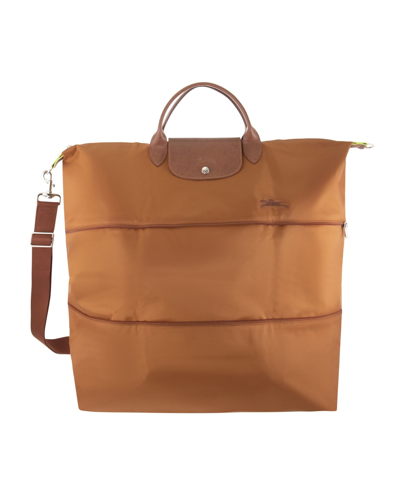 This large bag with a press stud flap plays with the codes of Le Pliage for a "travel" version. Longchamp was inspired by the art of origami to create LE PLIAGE, a light, foldable bag that has become a cult object worldwide. The Pliage Green line has an ecological style given by the recycled polyamide canvas. It offers a second and nobler life to the materials used. The bag adopts solid codes, such as the embroidered horse, and features tone-on-tone Russian leather trimmings, characteristic of Longchamp. The final detail: a green border on the handle, indicative of the eco-friendly use of materials, recalls the brand's characteristic bright green colour, a symbol of energy, freshness and dynamism! A socially responsible line for an everyday look that fully respects natural resources. DESIGNER ID: 1911 919 504