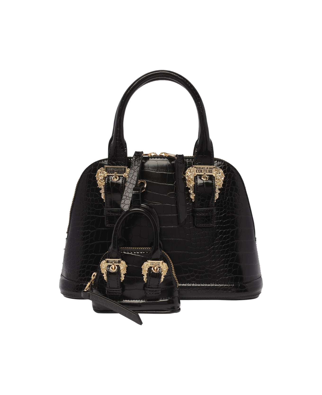 Versace Jeans Couture black logo couture hand bag, zip closure, inner zipped pocket, open pocket, inner zipped pochette, 2 straps, adaptable and removable strap