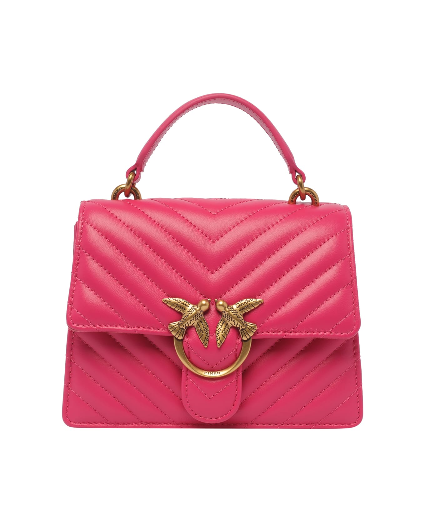 Pinko fuchsia Love One hand bag, love one model, interlocking closure, inner zipped and open pocket, strap, rempvable and adaptable strap, frontal logo Composition: 100% Calf Leather