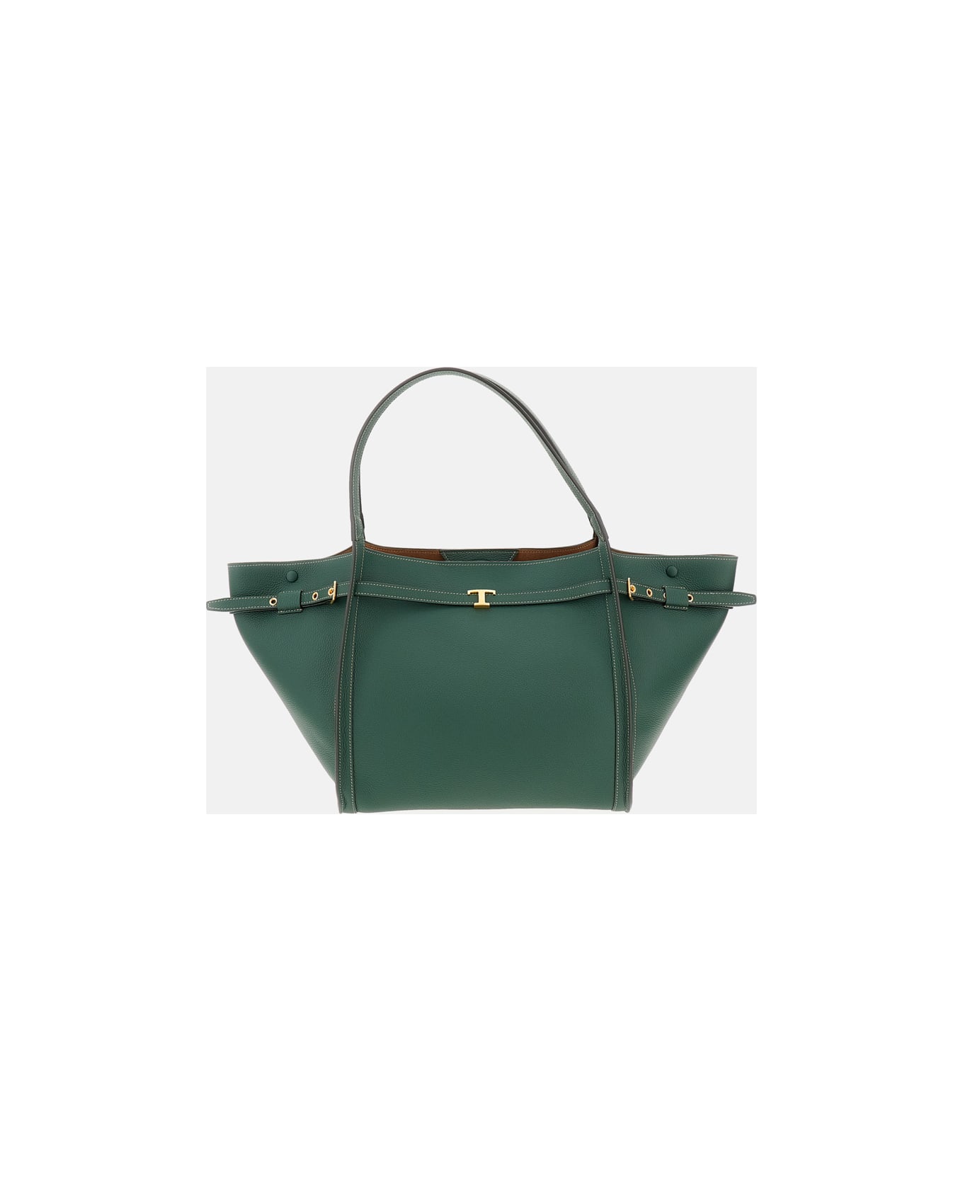 Item made of calf leather Personalized T Timeless metal accessory Hook and coated snap closure Internal zip pocket Metal feet Color: green Made in Italy Composition: 100% Calfskin