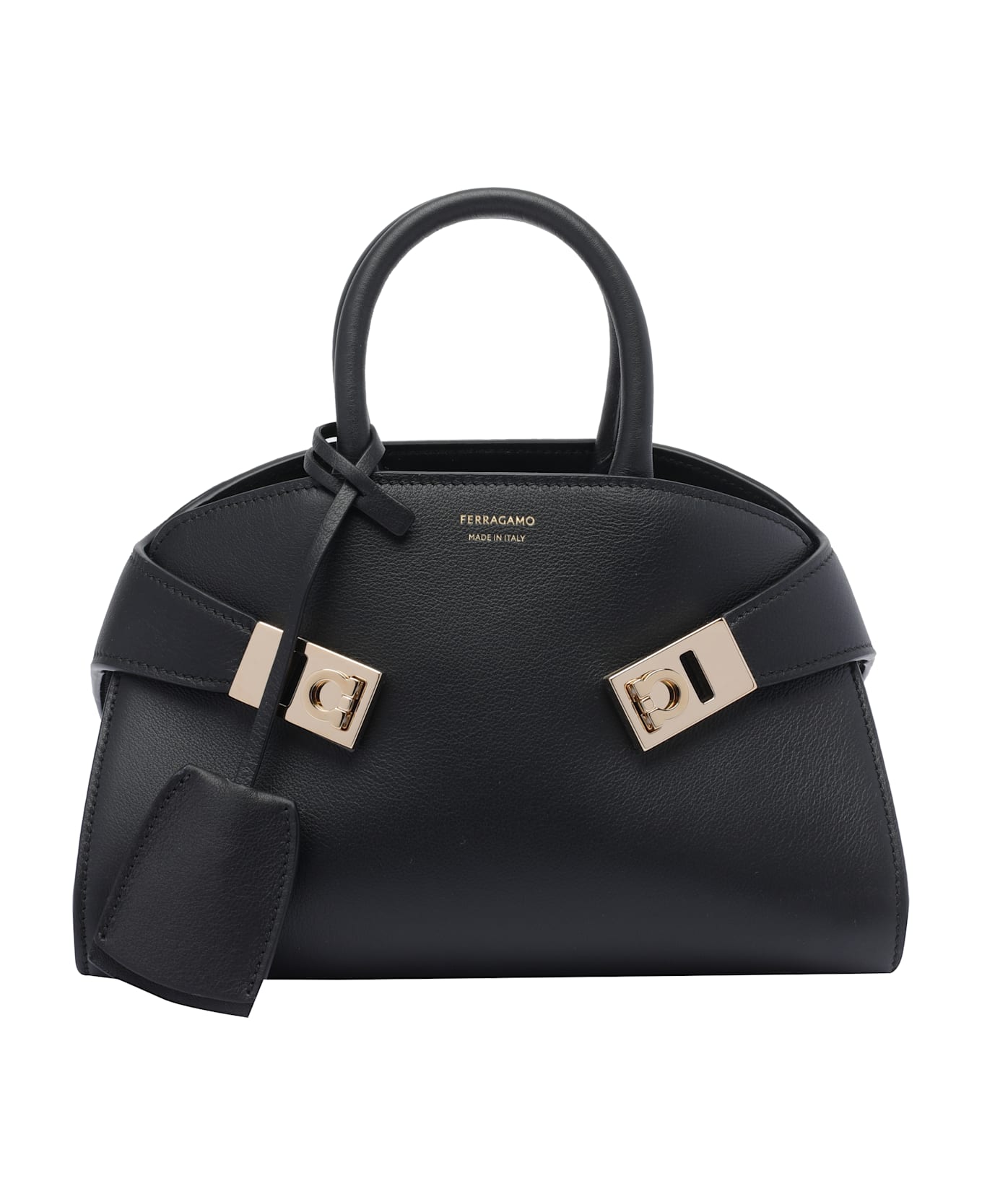 Ferragamo black Mini Hug handbag, 2 inner slots, 2 handles, adaptable and removable strap Composition: 100% Calf Leather