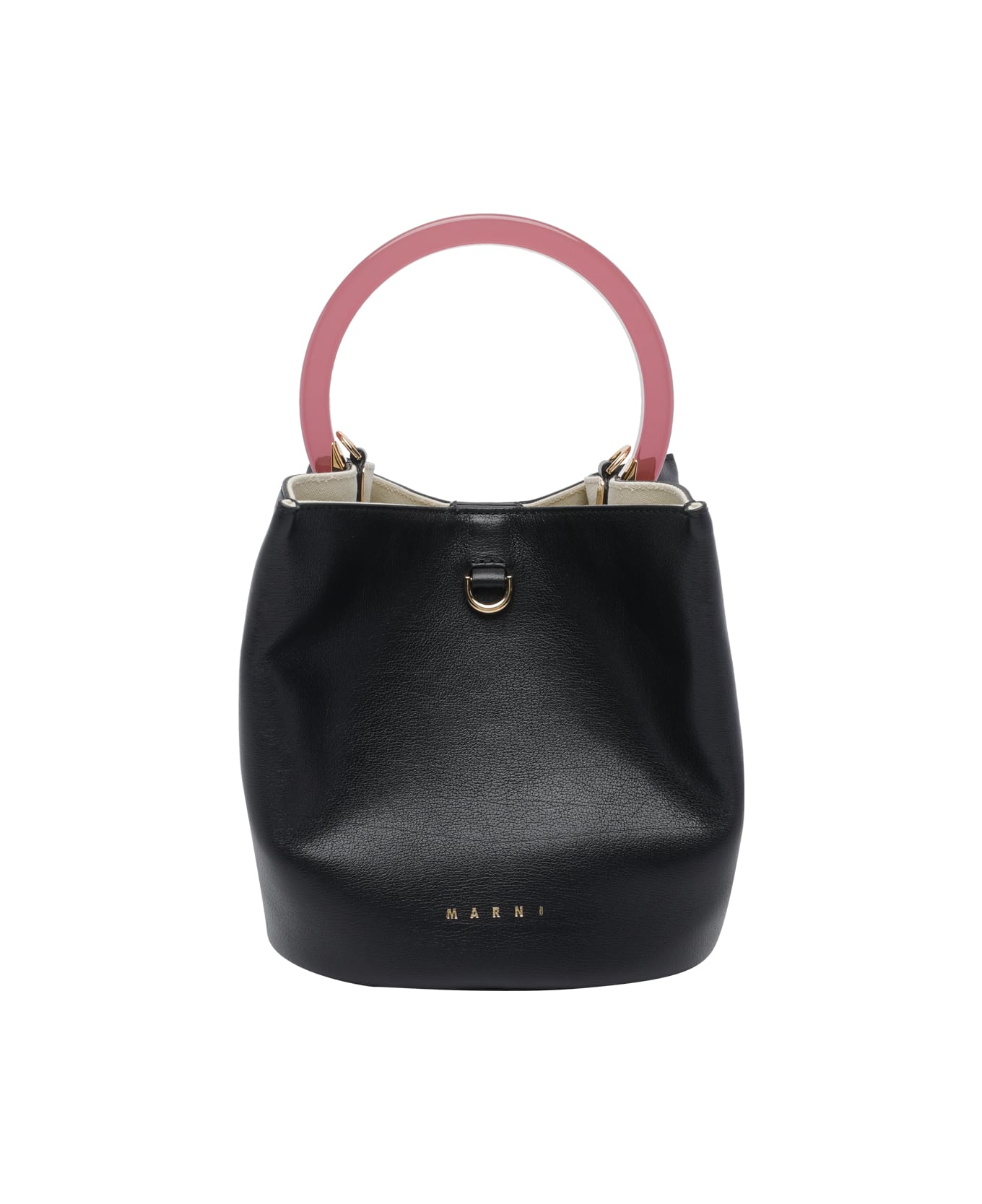Marni black Pannier handbag, magentic closure, one handle, adjustable and removable shoulder strap, logo Composition: 100% Calf Leather