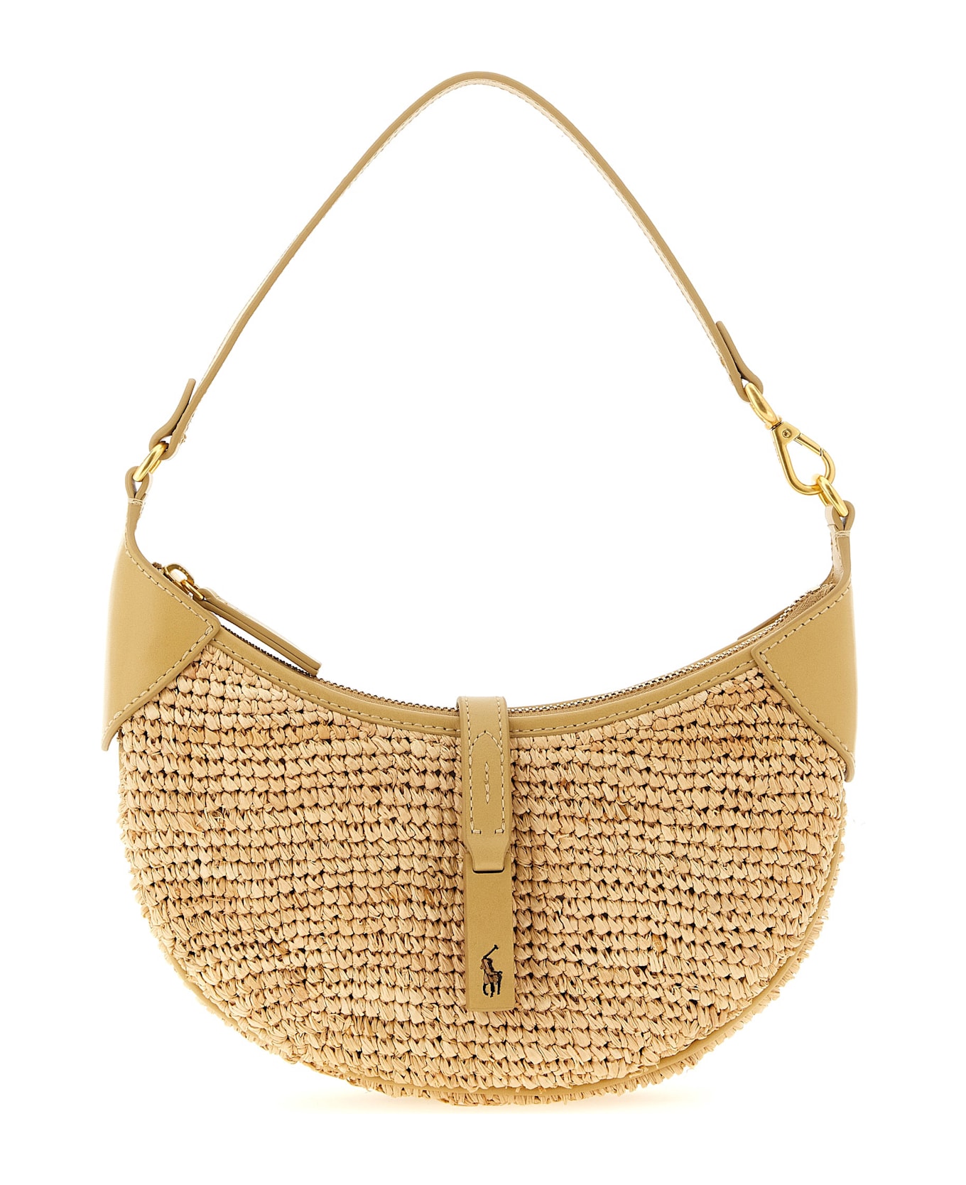Polo ID' raffia shoulder bag with saddle silhouette, zip closure, leather Hutton buckle detail with perforated logo, fixed leather handle, leather details