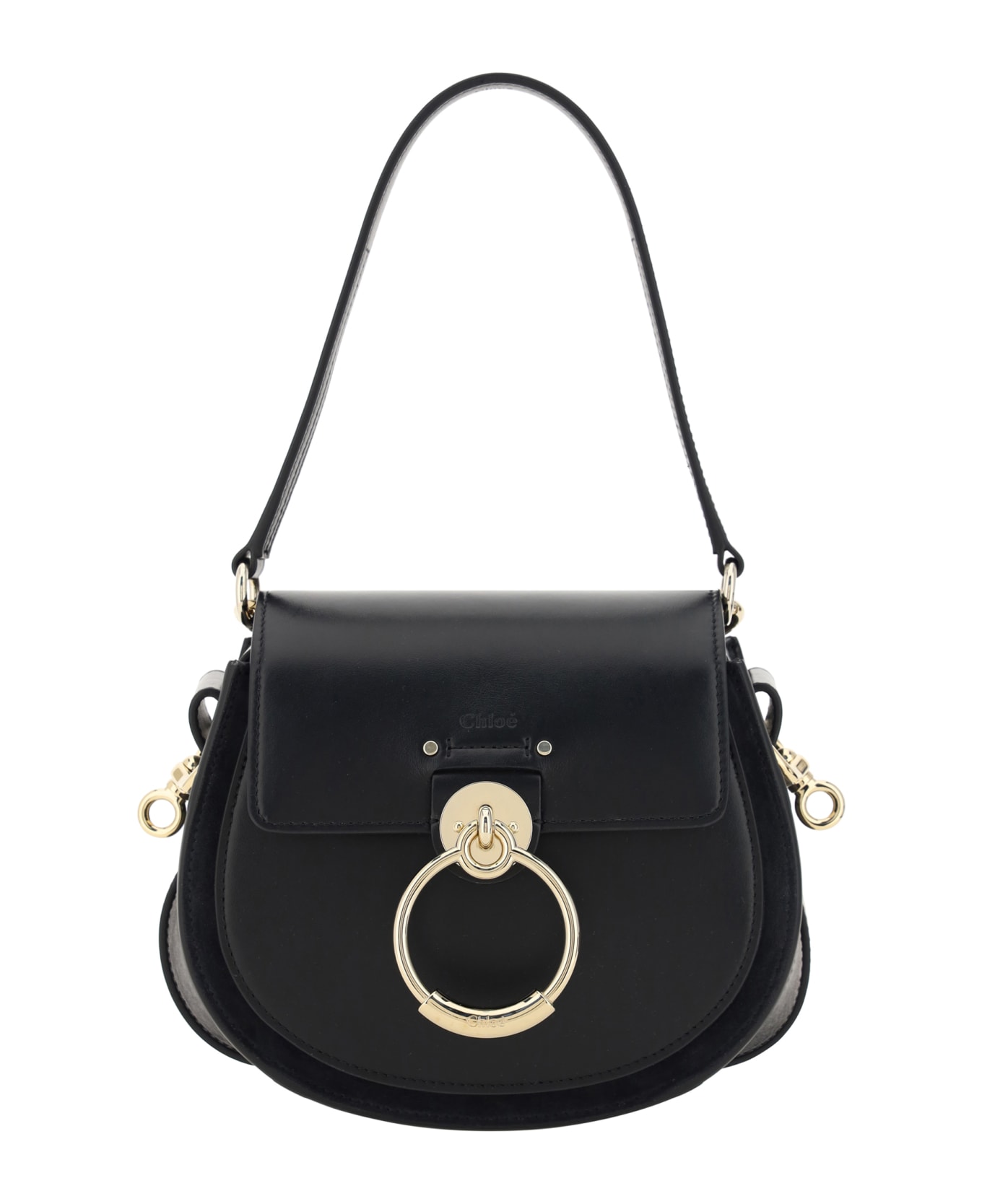 Calfskin tess shoulder bag by chloé, front flap with magnetic closure, interior flat pocket, removable short leather handle, removable and adjustable shoulder strap, tone-on-tone brand logo press-stamped on front, contrasting metal details, brand signature press-stamped on front.