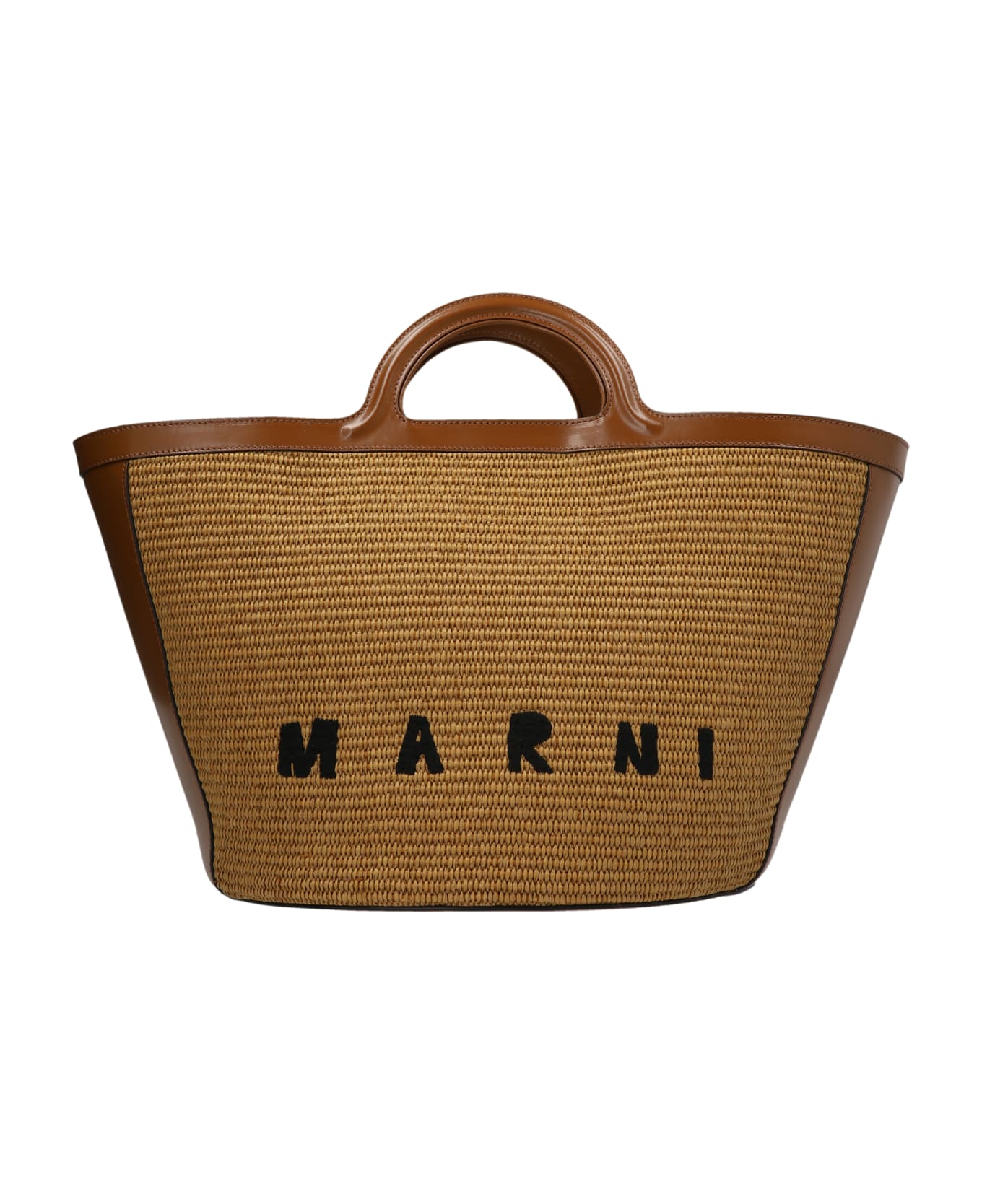 'Tropicalia' large straw handbag with contrast leather trims, front logo intarsia and dustbag. Composition: 52% cotton 48% polyamide