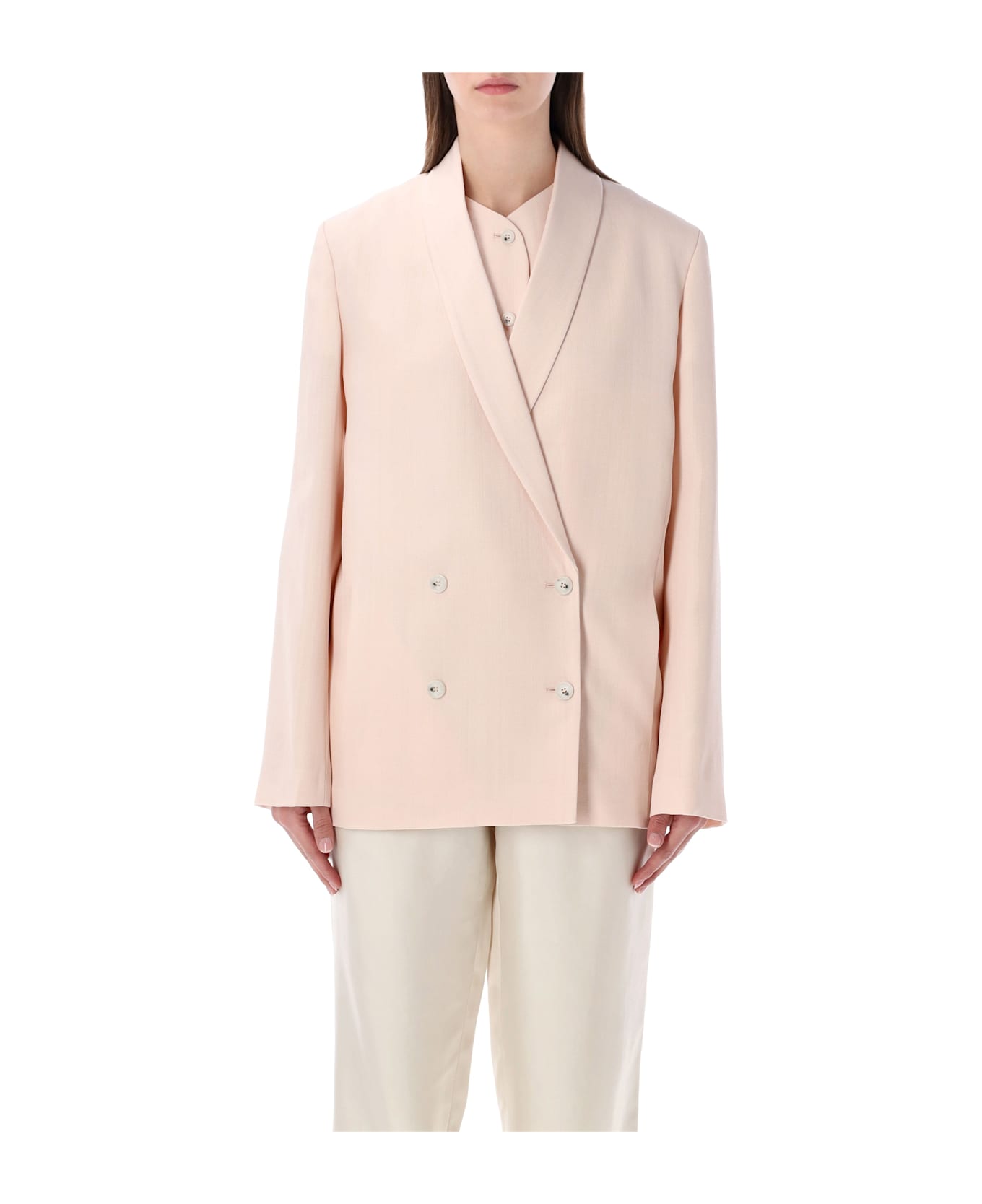 Elegant And Contemporary, The Minka Blazer By Loulou Redefines Classic Tailoring With A Refined, Feminine Sensibility. Crafted From A Wool-blend Fabric And Fully Lined, It Features A Clean Double-breasted Silhouette With A Softly Structured Fit. The Minimalist Design And Neutral Tone Make It A Versatile Piece, Ideal For Polished Daywear Or Elevated Evening Looks. Fully Lined Shawl Collar Double-breasted Button Closure Long Sleeves Side Pockets Softly Structured Silhouette Clean, Tailored Finish Alessandra Is 1,75 M And Wears Size 36
