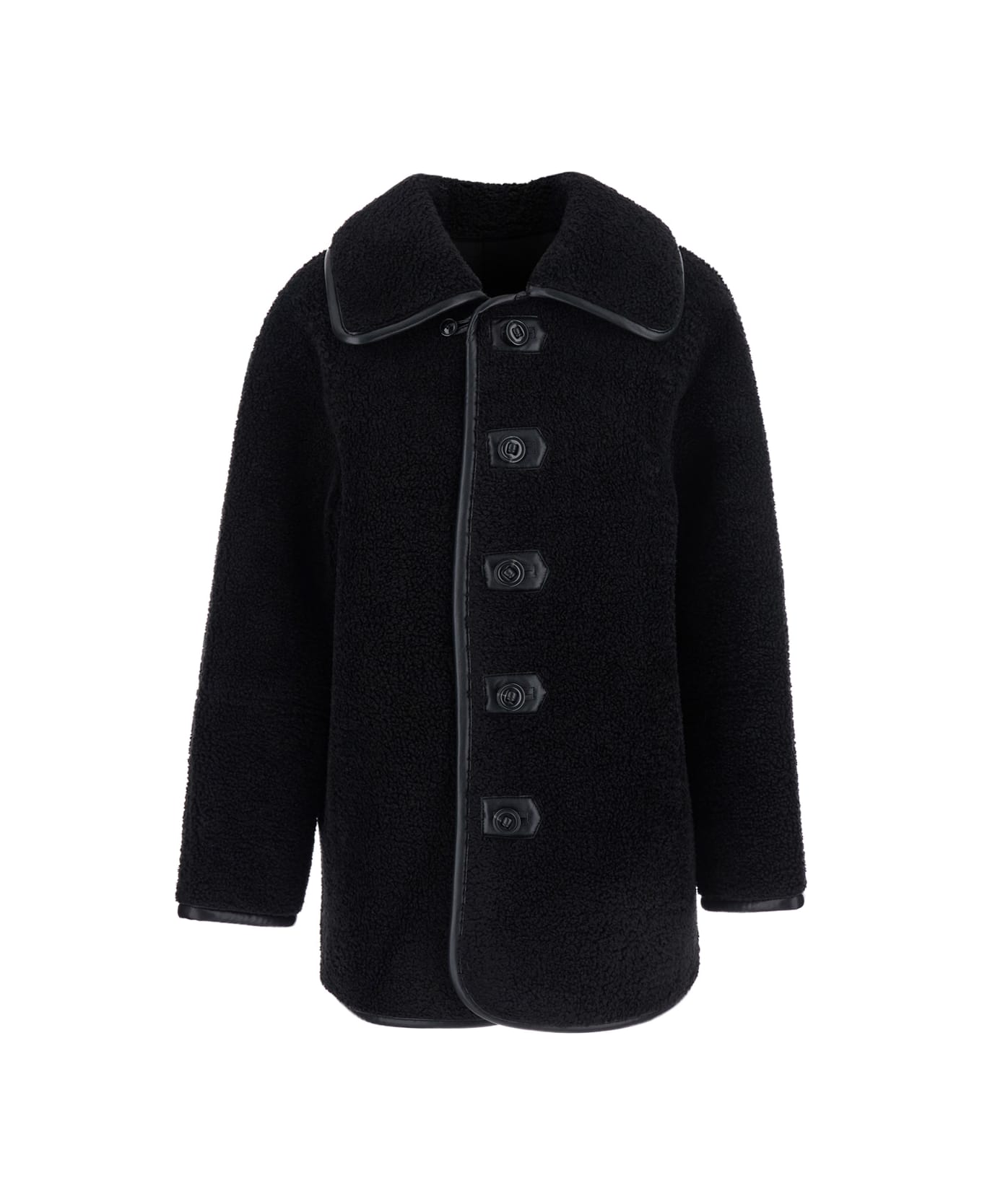 Jacket Black Wide collar Long sleeves Button closure Reversible design Straight hem Faux fur Regular fit