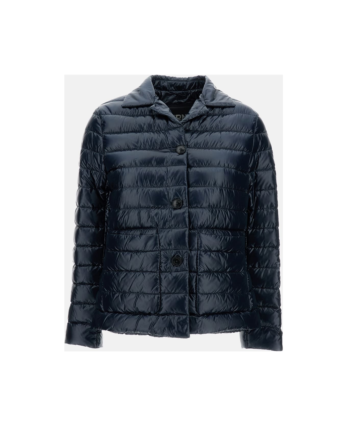 Quilted jacket with front button fastening Pointed shirt collar Small front pockets Blue Composition: 100% Polyamide