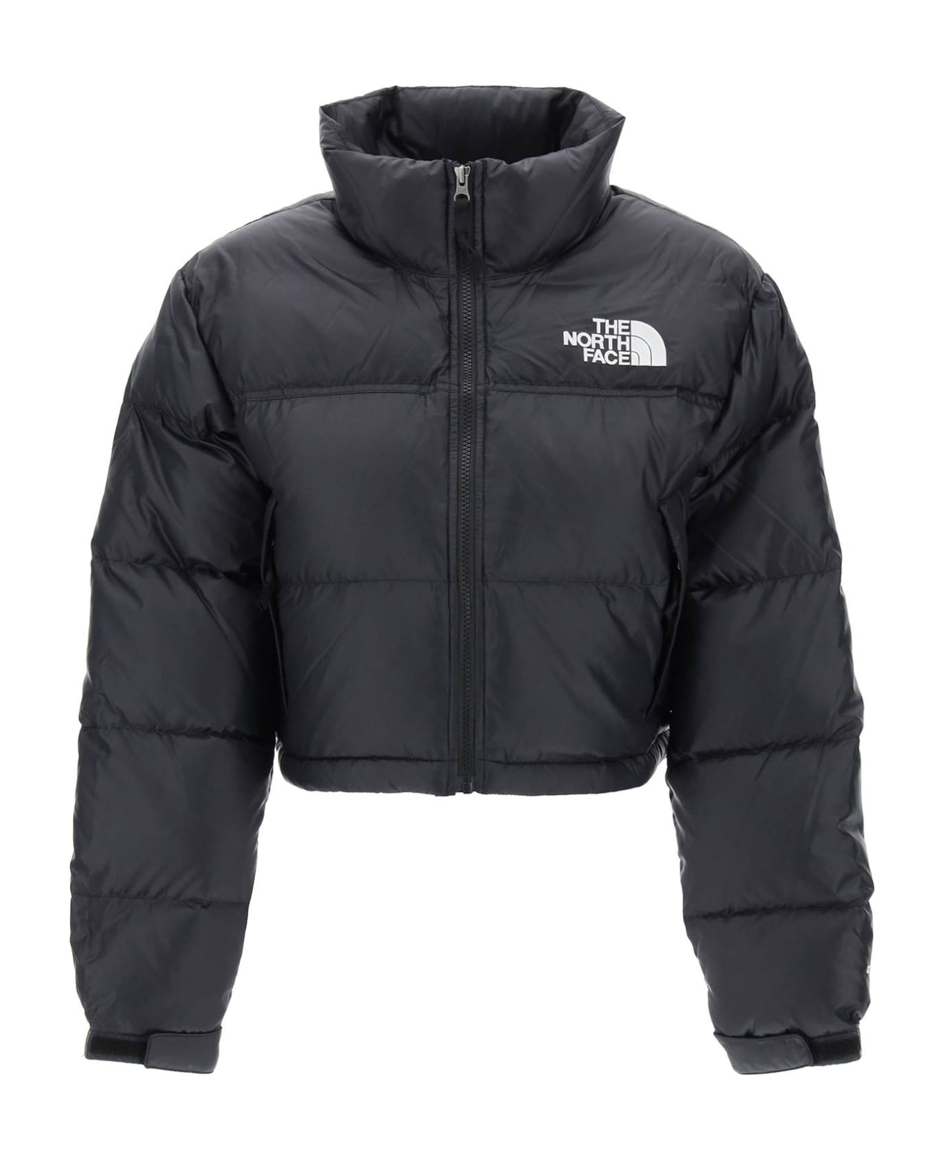 The North Face Nuptse Down Jacket is made of ripstop nylon with warm recycled down filling. The cropped and boxy design features a stand-up collar, customized with logos on the chest and back. It also has a double-slider front zipper, flap pockets with hidden zippers, elastic cuffs with adjustable velcro tabs, and a drawstring at the waist. Made from technical fabric, this jacket is perfect for any outdoor adventure. The model is 177 cm tall and wears a size S