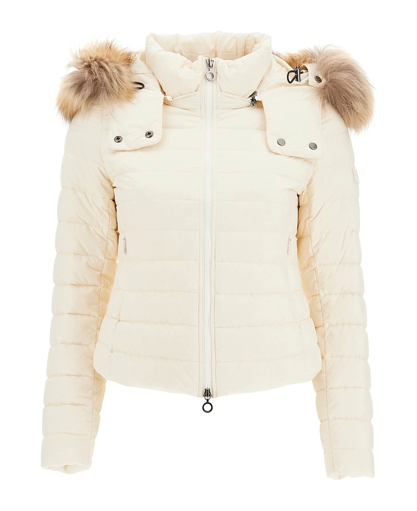 Tatras short puffer jacket crafted in matte-finish quilted nylon with padding in 90/10 goose down and feathers. It features stand collar with removable hood adorned with detachabale raccoon fur, two-way zipper closure and side welt pockets with invisible zipper and fleece lining. Branded with tonal logo label on the left sleeve. Lined and provided with an internal pocket. Slim fit. The model is 177 cm tall and wears size 1 Tatras.