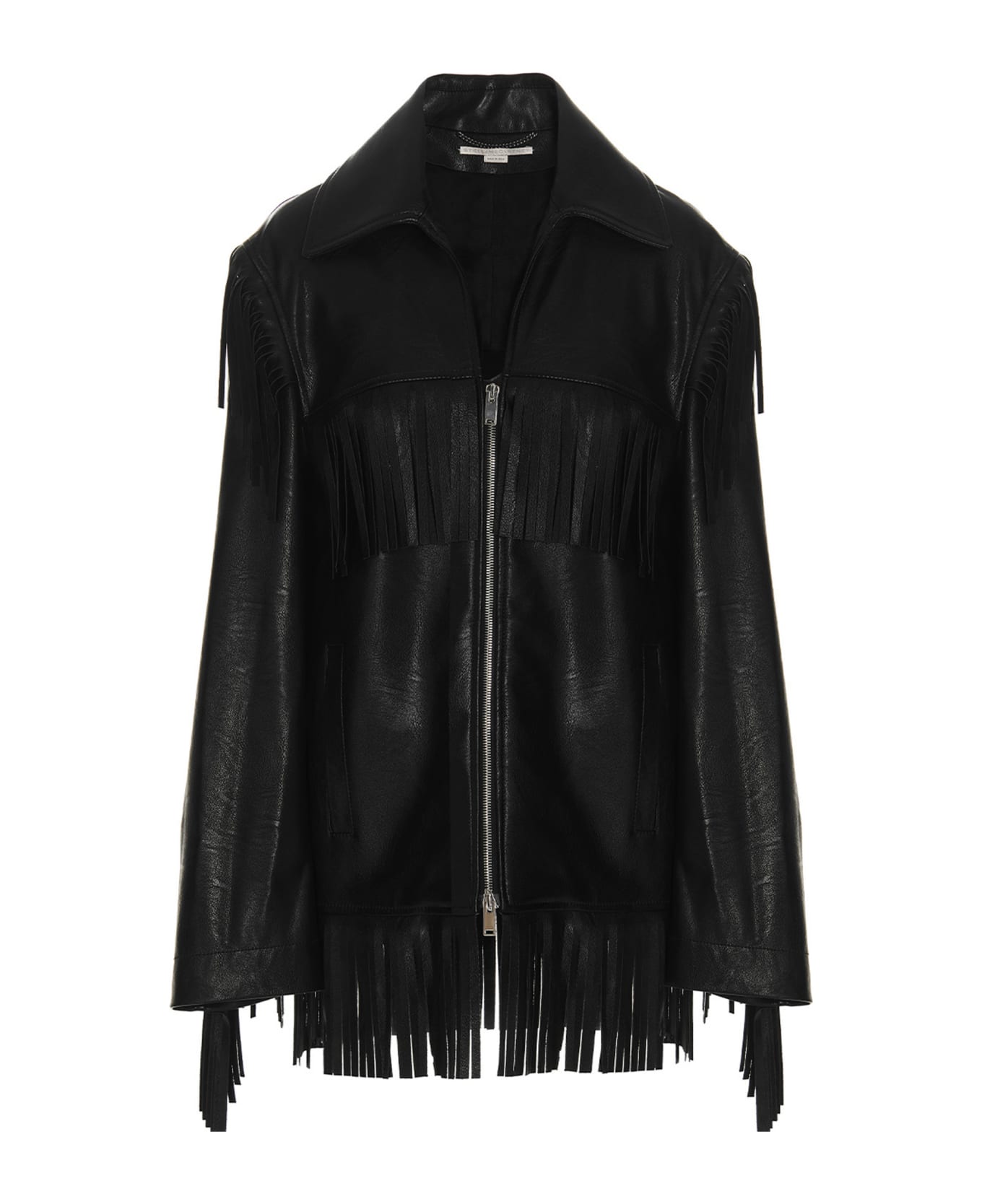 'Altermart' leather-like fabric jacket with fringed appliqué details, a zip closure, a V-neck, a collar, long sleeves, and pockets. : product made in sustainable materials. Composition: 62% polyester 38% viscose
