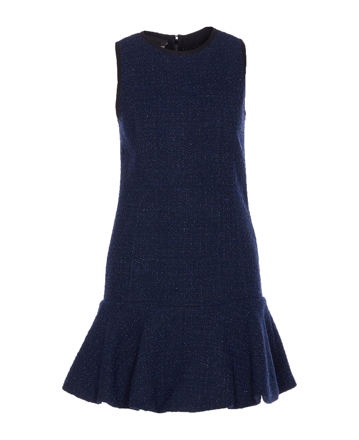 Pinko blue Arrosto dress, back zip closure, round neck, large straps, metallic effect, pleated gown Composition: 48% Polyester, 31% Cotton, 13% Acrylic, 4% Metallic, 4% Wool
