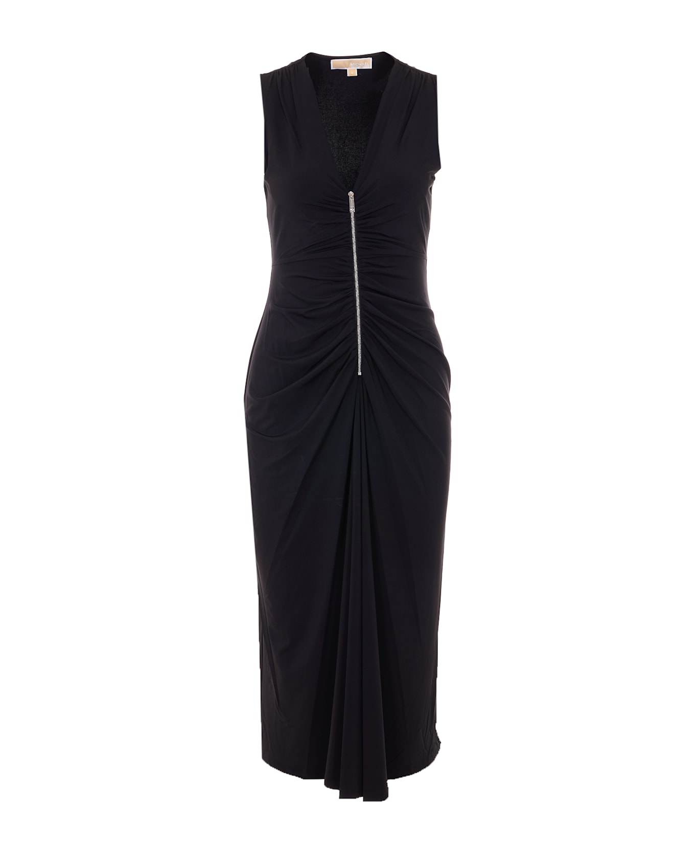 Micheal Michael Kors black dress, zip closure on the front, sleeveless, v-neck, ruffled, long sleeves, tight fit Composition: 88% Polyester, 12% Elastane