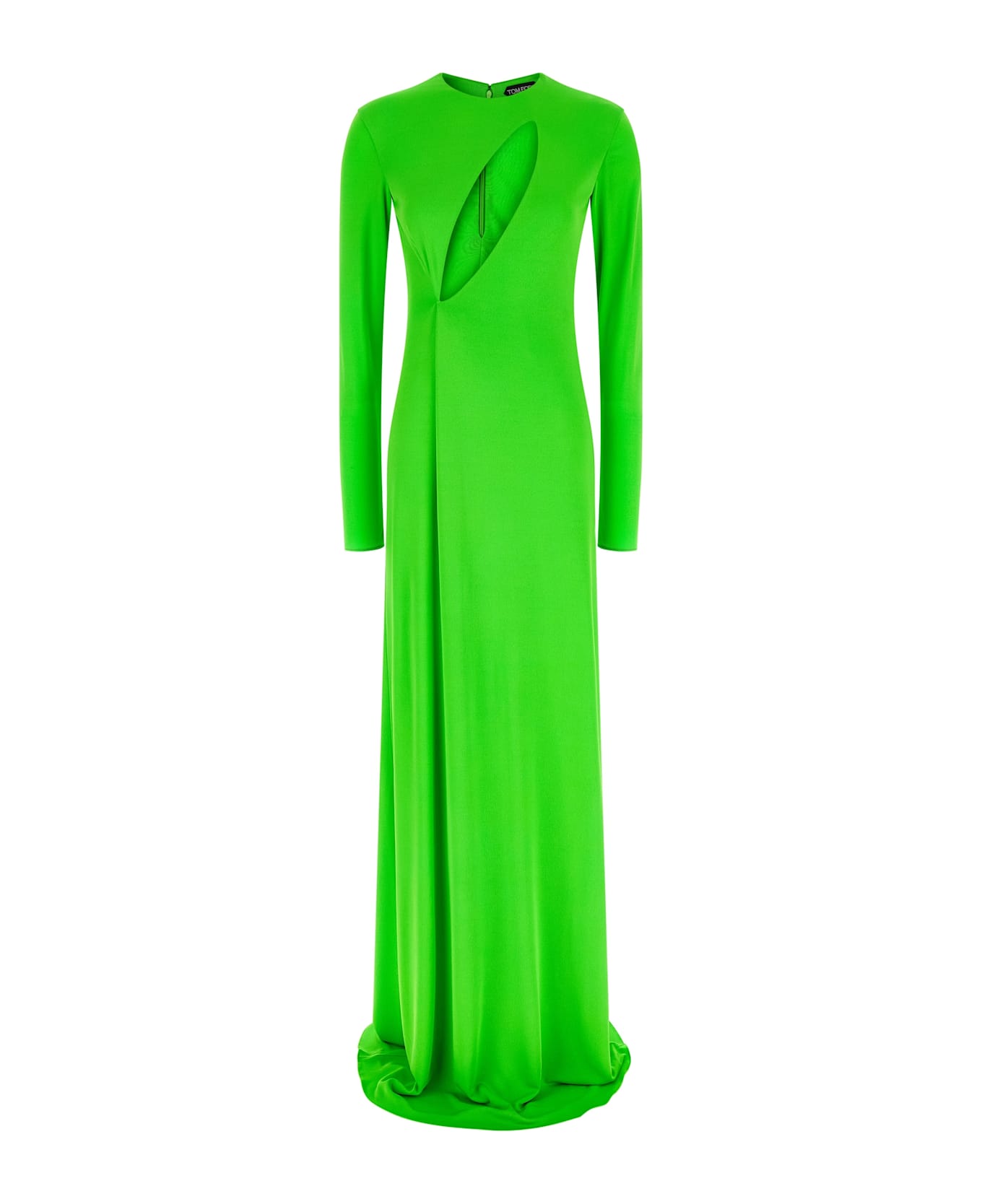 'Long Sleeve Slash Front Evening' fluid viscose dress with cut-out detail with front pincer, crew neck, long sleeves, back zip closure. Composition: 100% viscose