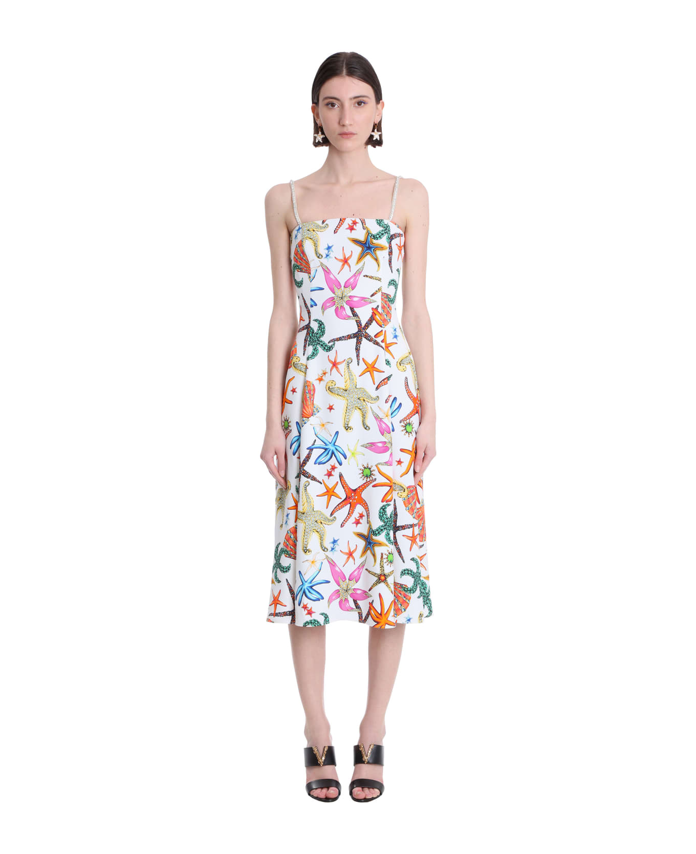 Starfish-print dress Dress in white viscose, thin straps, all over print, strass detail, side split, 100% silk, Model is 180 cm and wears 36 Composition: Viscose