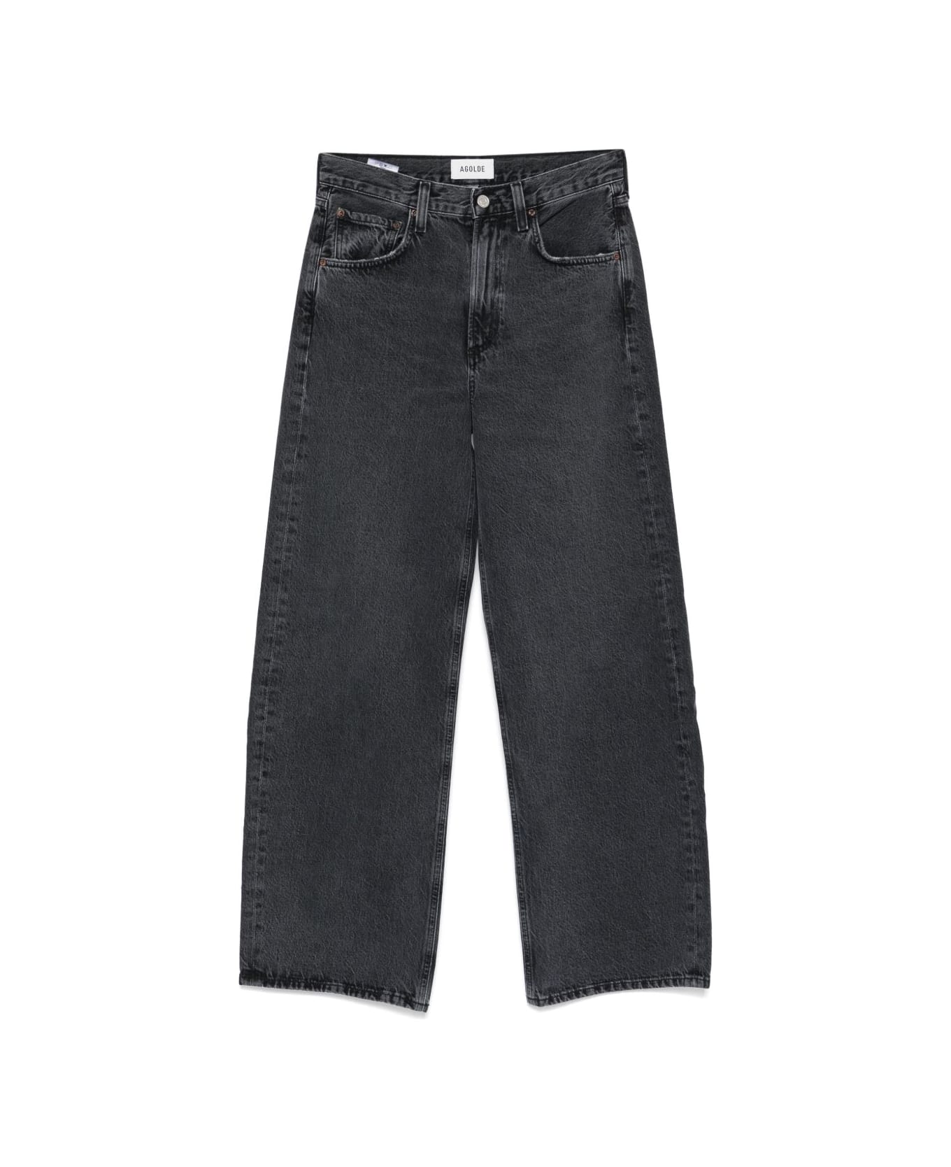 Agolde Classic five-pocket trousers with buttons, high waist, and wide leg in black cotton