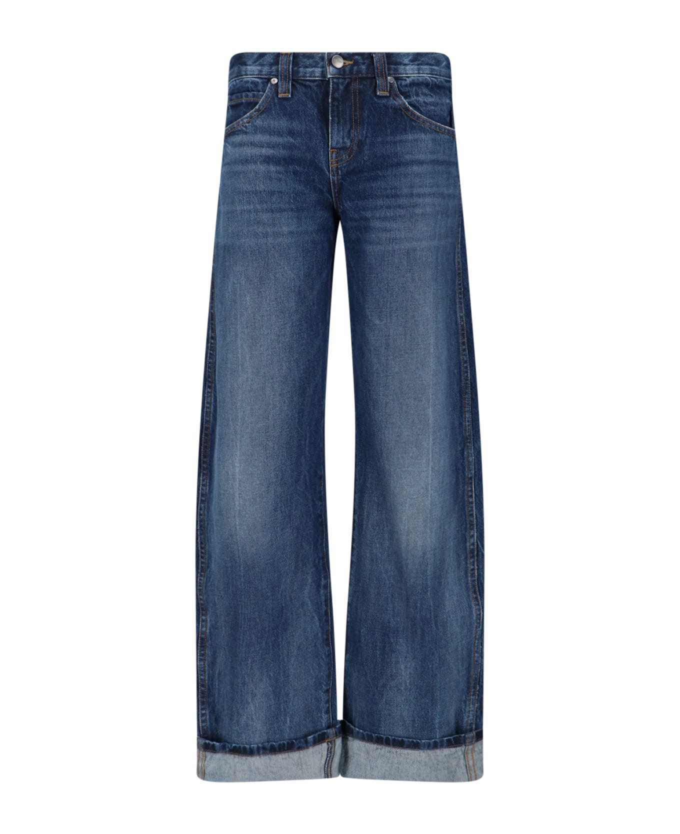 Khaite wide blue cotton denim Karo jeans with mid waist, button and zip closure, five pockets, straight leg, maxi turn-up hem. Composition: 100% Cotton