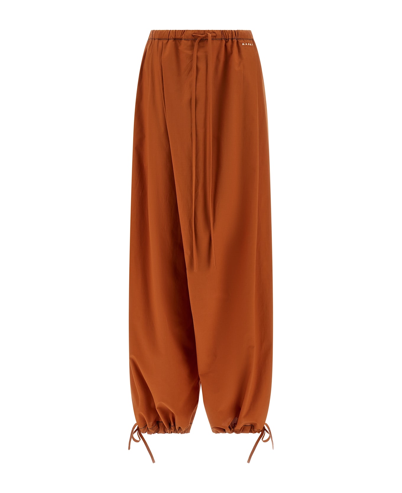 Cotton poplin pants, extra wide leg with front diagonal draping, drawstring elastic waistband, logo embroidery, pockets, drawstring on the leg bottom. Composition: 100% cotton