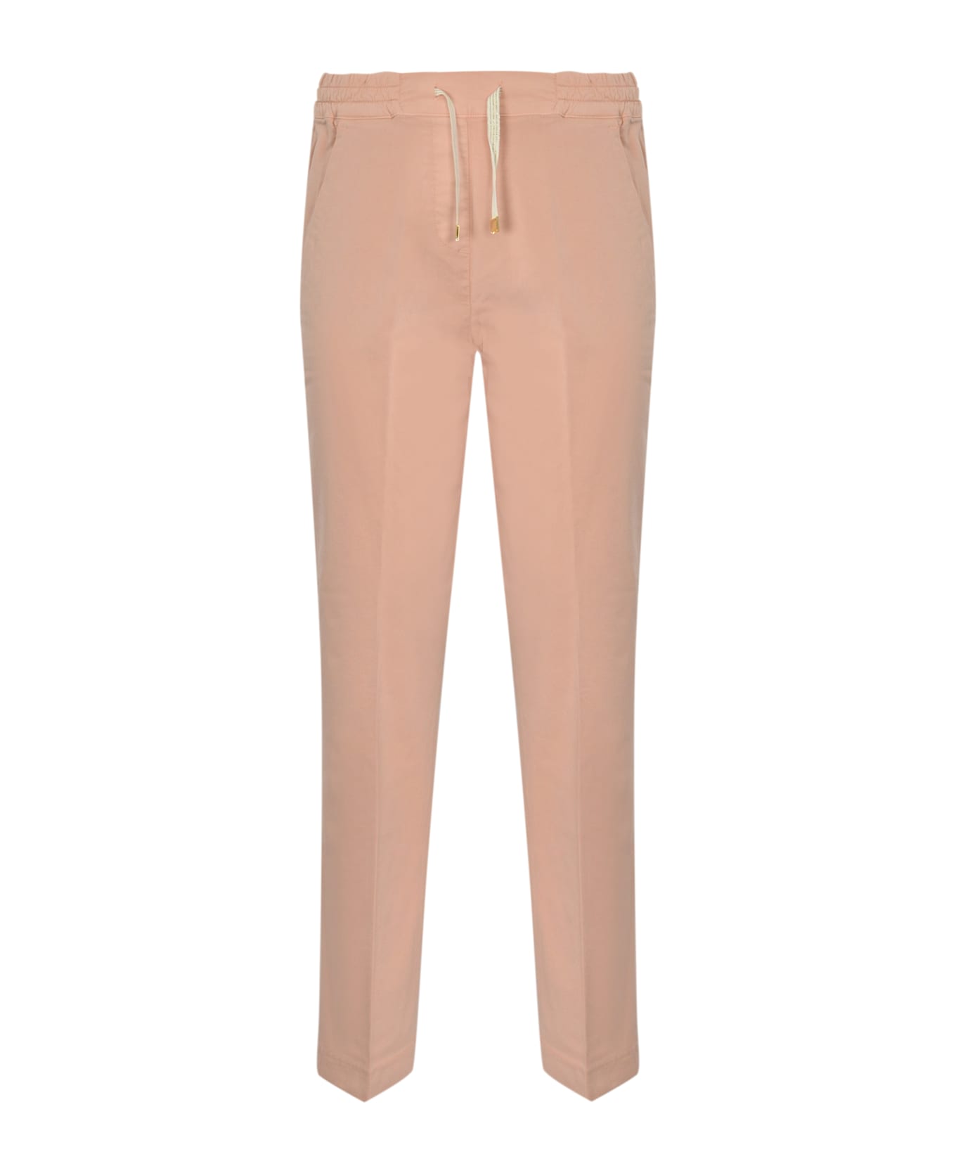 women's chinos: cotton and lyocell blend adjustable elastic waist with drawstring side french pockets back welt pockets ironed crease regular fit composition: 49% cotton, 49% lyocell, 2% elastane