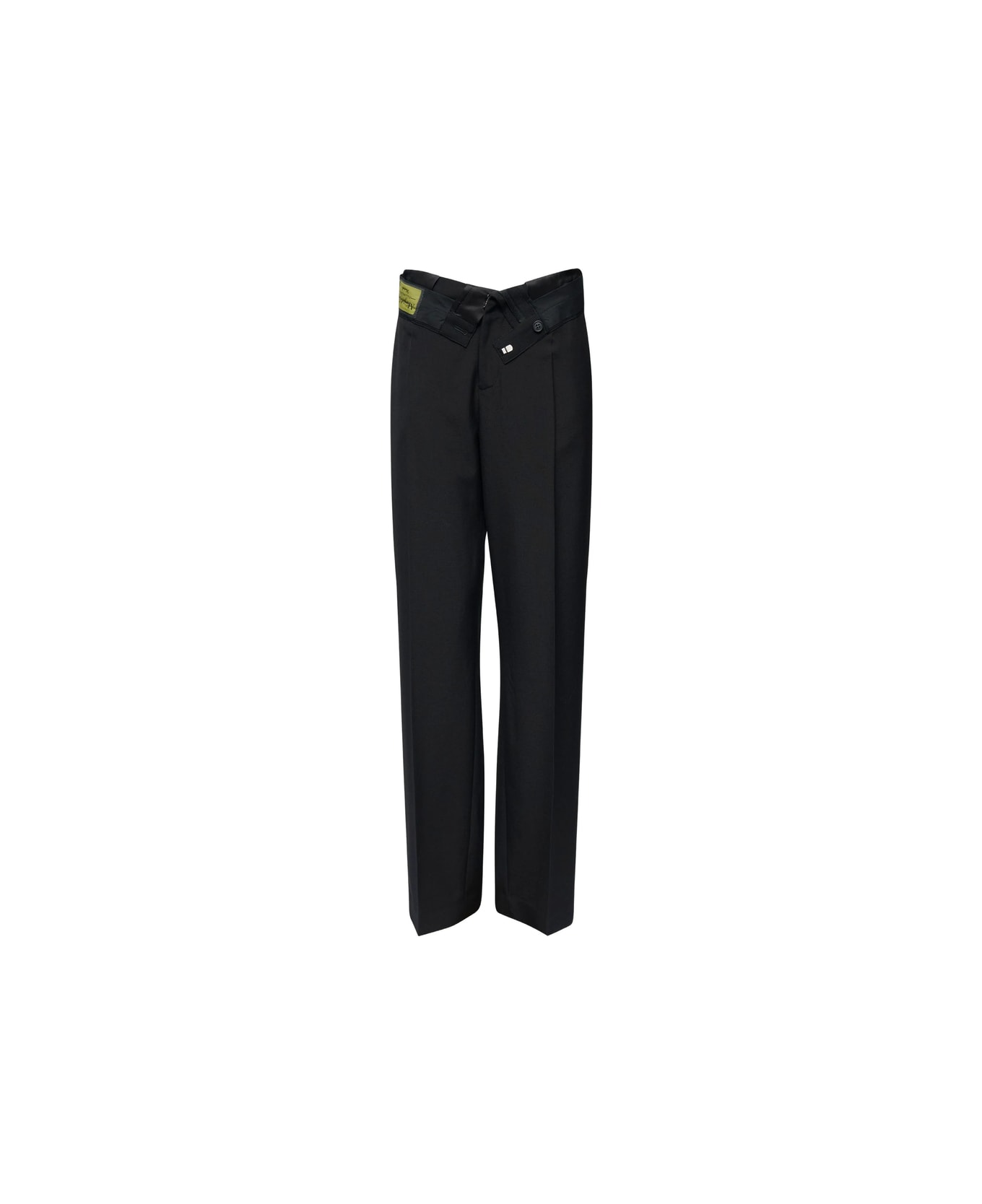 black cross-over fastening button detail belt loops rear welt pocket straight leg