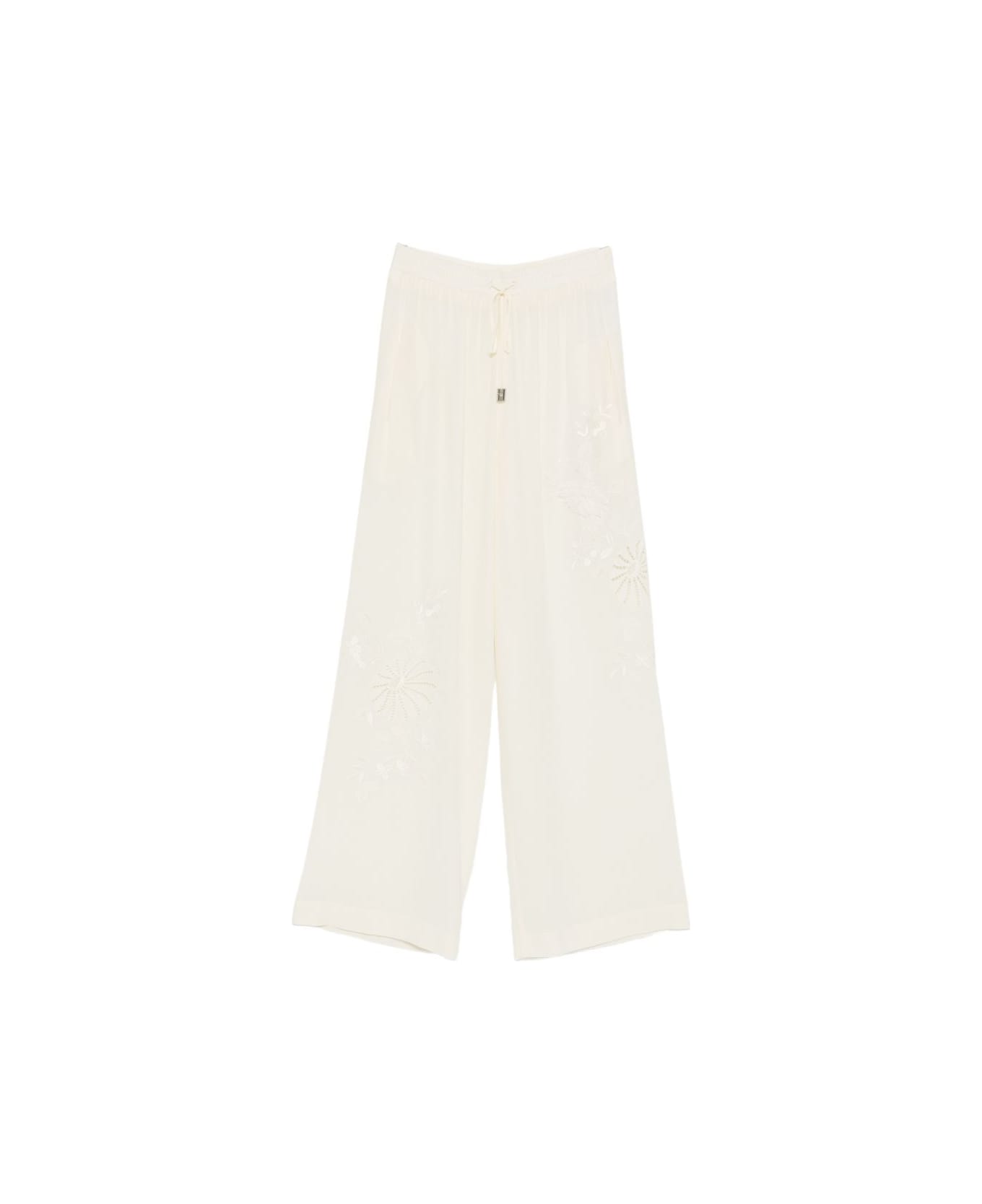 off white floral embroidery drawstring wide leg relaxed fit silk