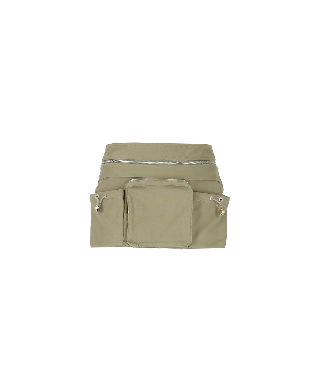 - Green Dion Lee cotton mini skirt for woman - Two front welt pockets with drawstrings - One front zip pocket - Zip detail at waist - Rear zip fastening - Rear adjustable belt detail