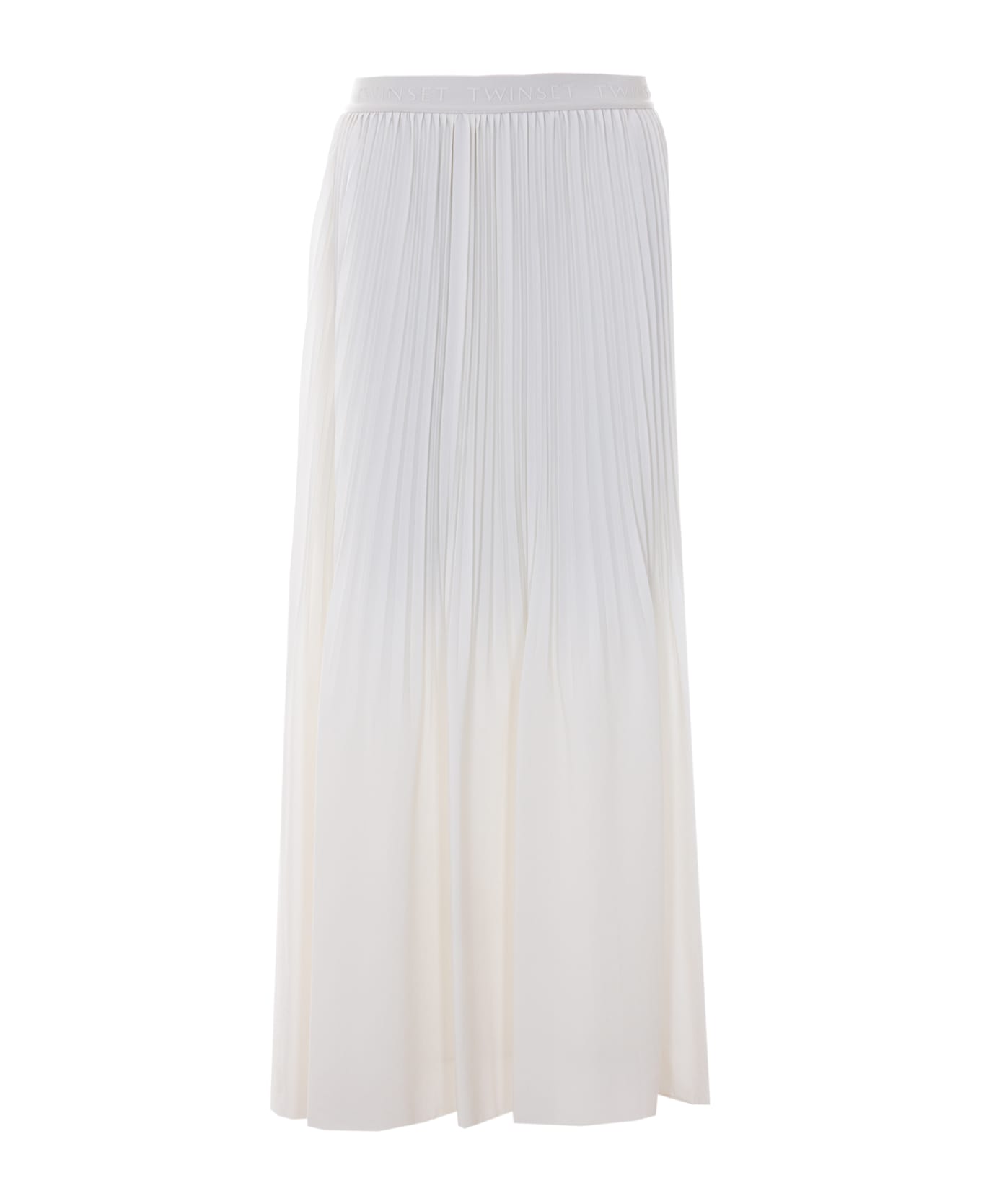 Twinset white maxi skirt, elasticized closure,logo on waist, pleated