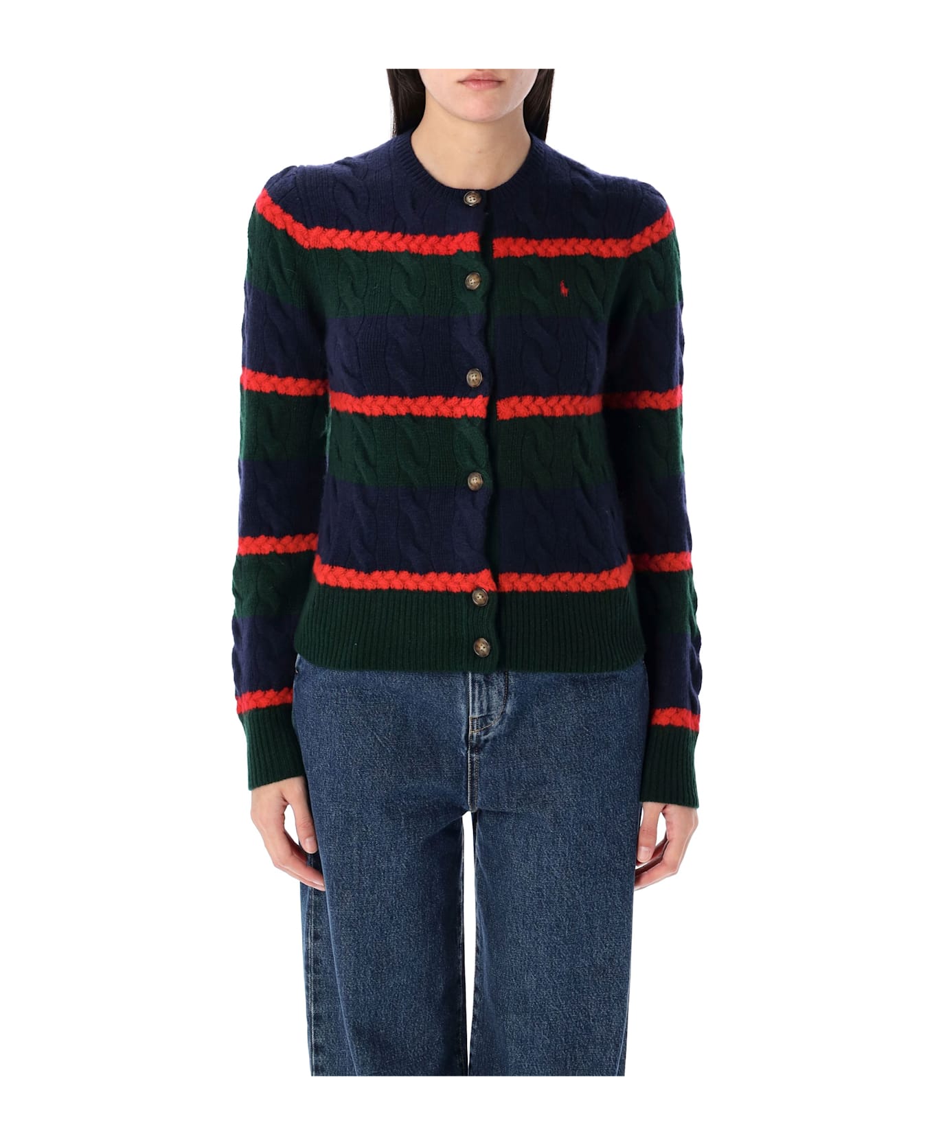 Cable Knit Wool-cashmere Cardigan By Polo Ralph Lauren. Featuring: Round Neck Long Sleeves Buttoned Placket Signature Embroidered Pony On The Left Chest Stripes Pattern Ribbed Trims Slim Fit Model Is 1,70 M And Wears Size S