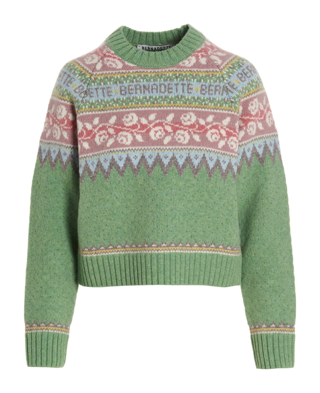 Cesar' all-over jacquard pattern wool sweater with crewneck and long cuffed sleeves. d sleeves.