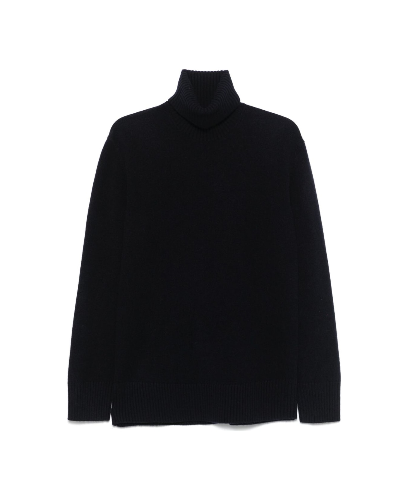 midnight blue ribbed cuffs and hem roll neck long sleeves