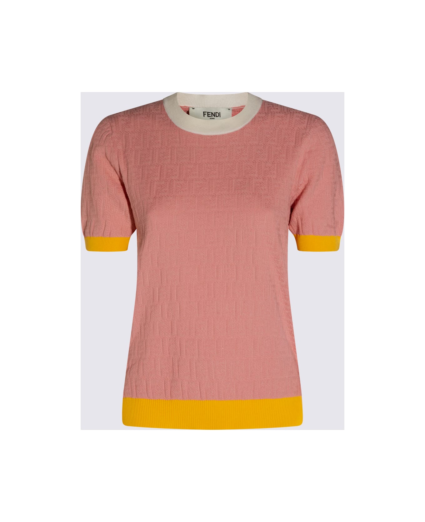 Pink cotton knitwear from Fendi featuring short sleeves, round collar and regular vestibility. Composition: _, 70% Cotton, 25% Silk, 4% Polyamide, 1% Elastane