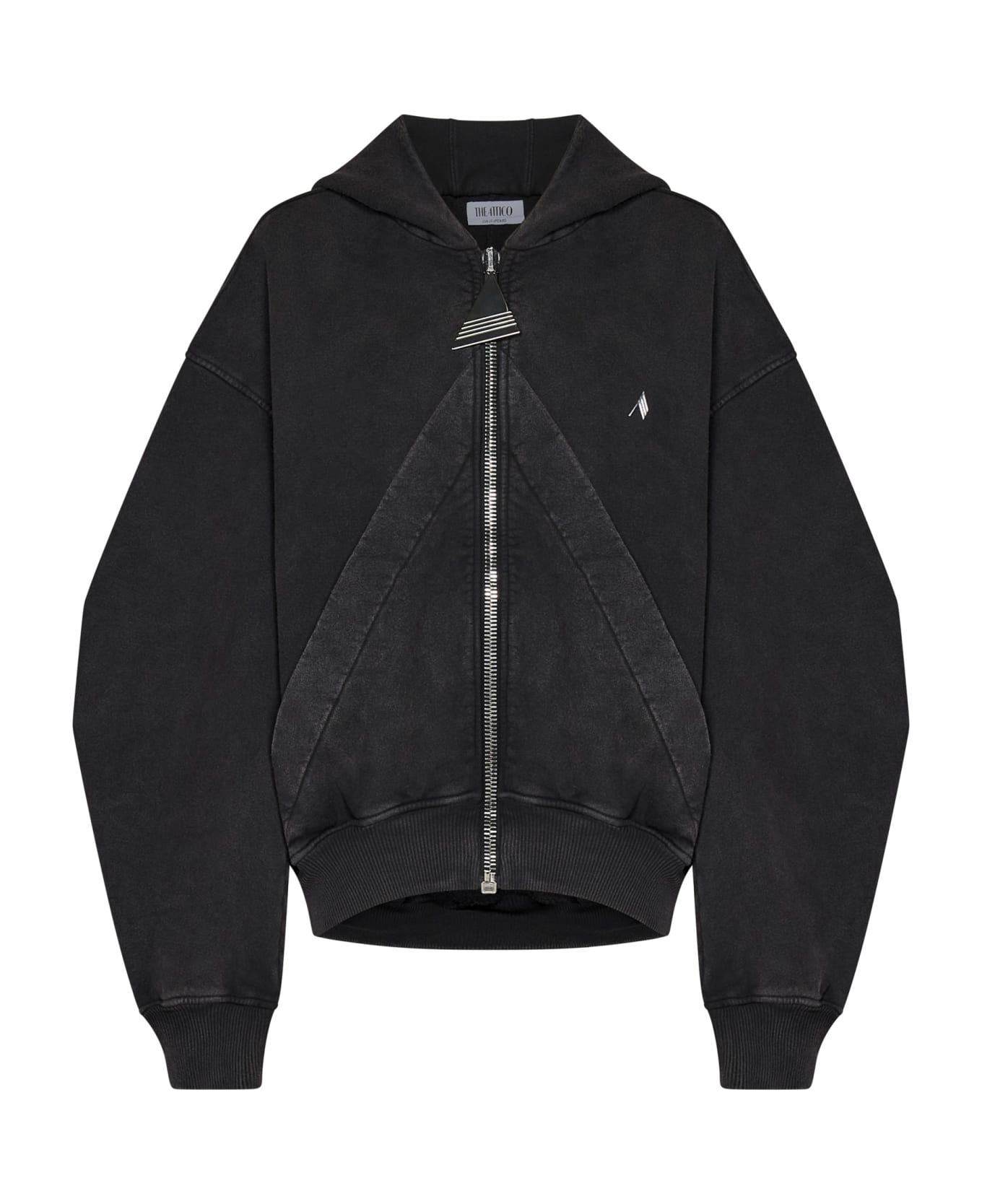 Composition: Front Metal Zip Closure, Logo Zip Puller Hood; Long Wide Sleeves, Dropped Shoulders Rubberized Logo At Chest Triangle Insert At Front With Pockets Ribbed Cuffs And Bottom Band Regular Fit Faded Black Color 98% Cotton, 2% Elastane Made In Portugal
