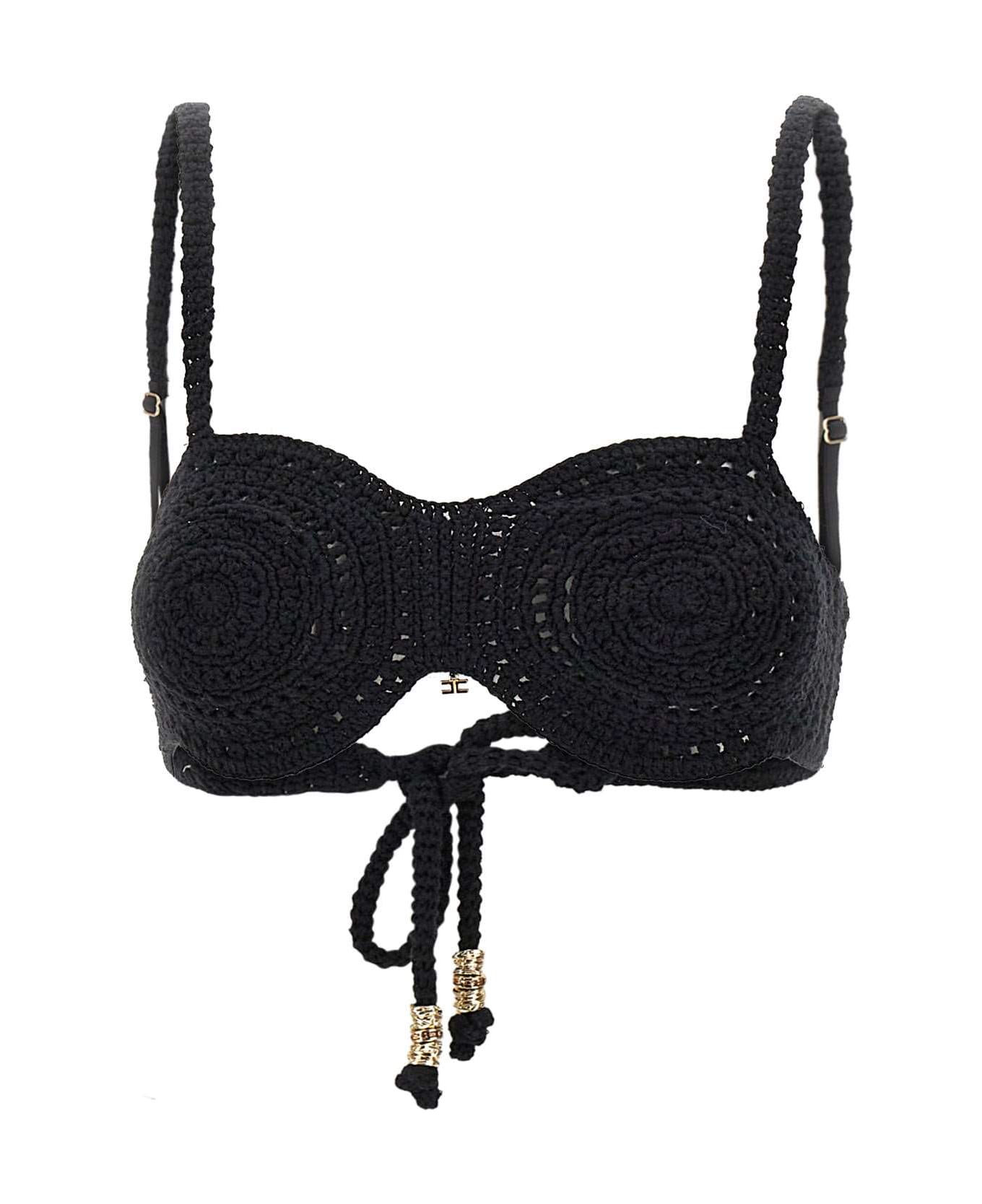 Elisabetta Franchi Daily" top, black, hand crochet work, back adjusters and gold metal charms detail. Regular fit. Perfect for summer season. Made in Italy.