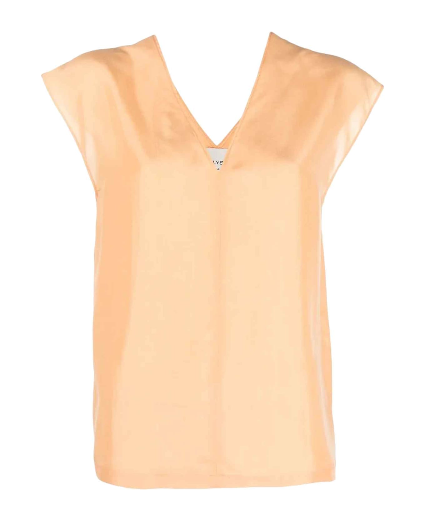 Orange top women. Sleeveless design, V-neck and back opening. 100% silk