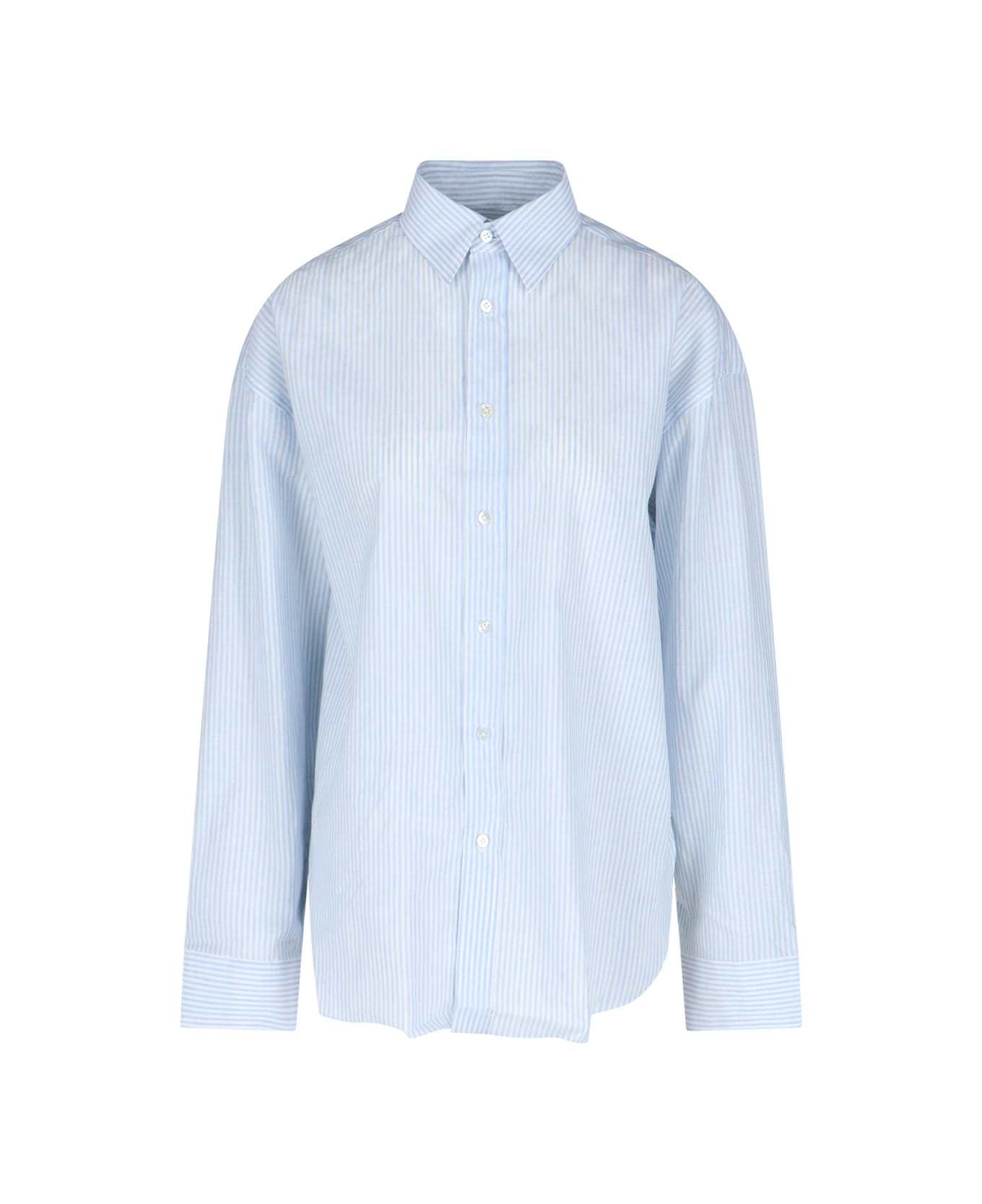Finamore 1925 Oriana striped shirt in light blue cotton and linen with striped pattern, classic collar, button closure, button cuffs, curved hem. Composition: 54% Cotton, 32% Linen, 14% Silk