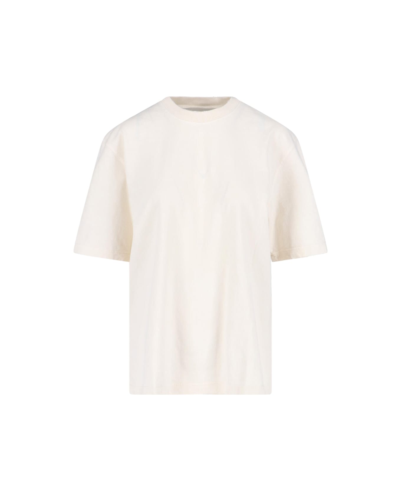 Golden Goose "golden" white cotton crew neck T-shirt with short sleeves, destroyed trims, tone-on-tone logo embroidery on the back, metal stars on the back, straight hem. Composition: 100% Cotton